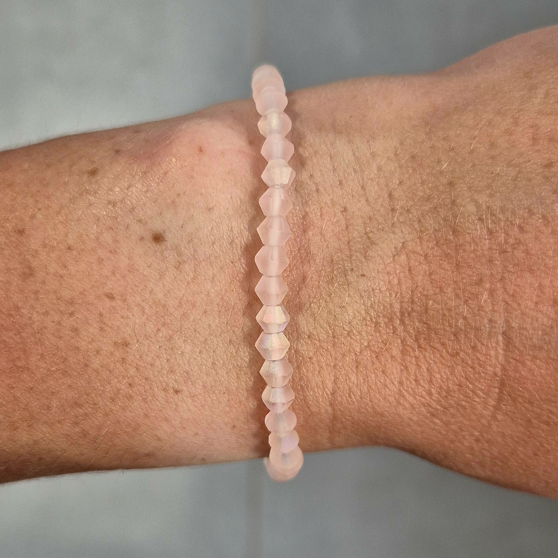 Skleněné broušené korálky (imitace Swarovski) jsou navlečené na pružné gumičce.