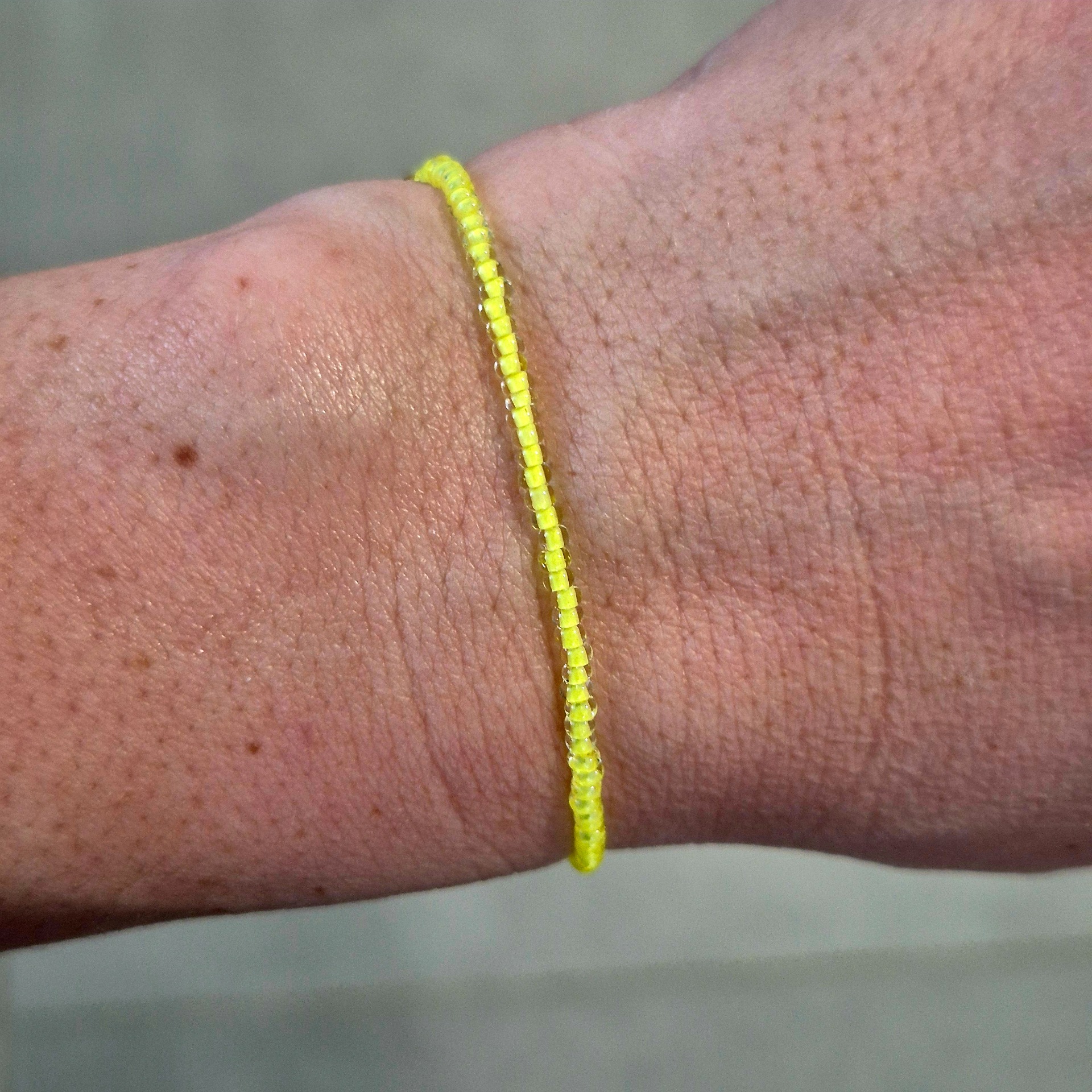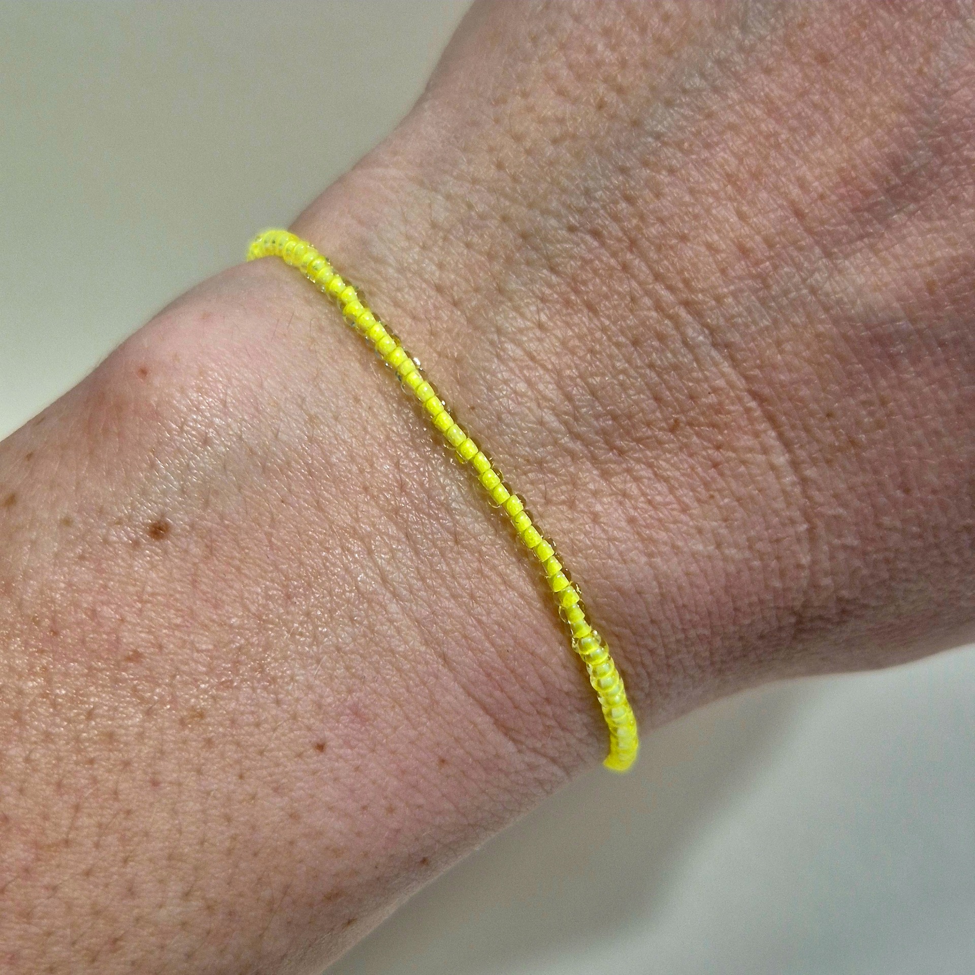 Jemný korálkový náramek v zářivě žluté barvě, který okamžitě rozzáří každý den.