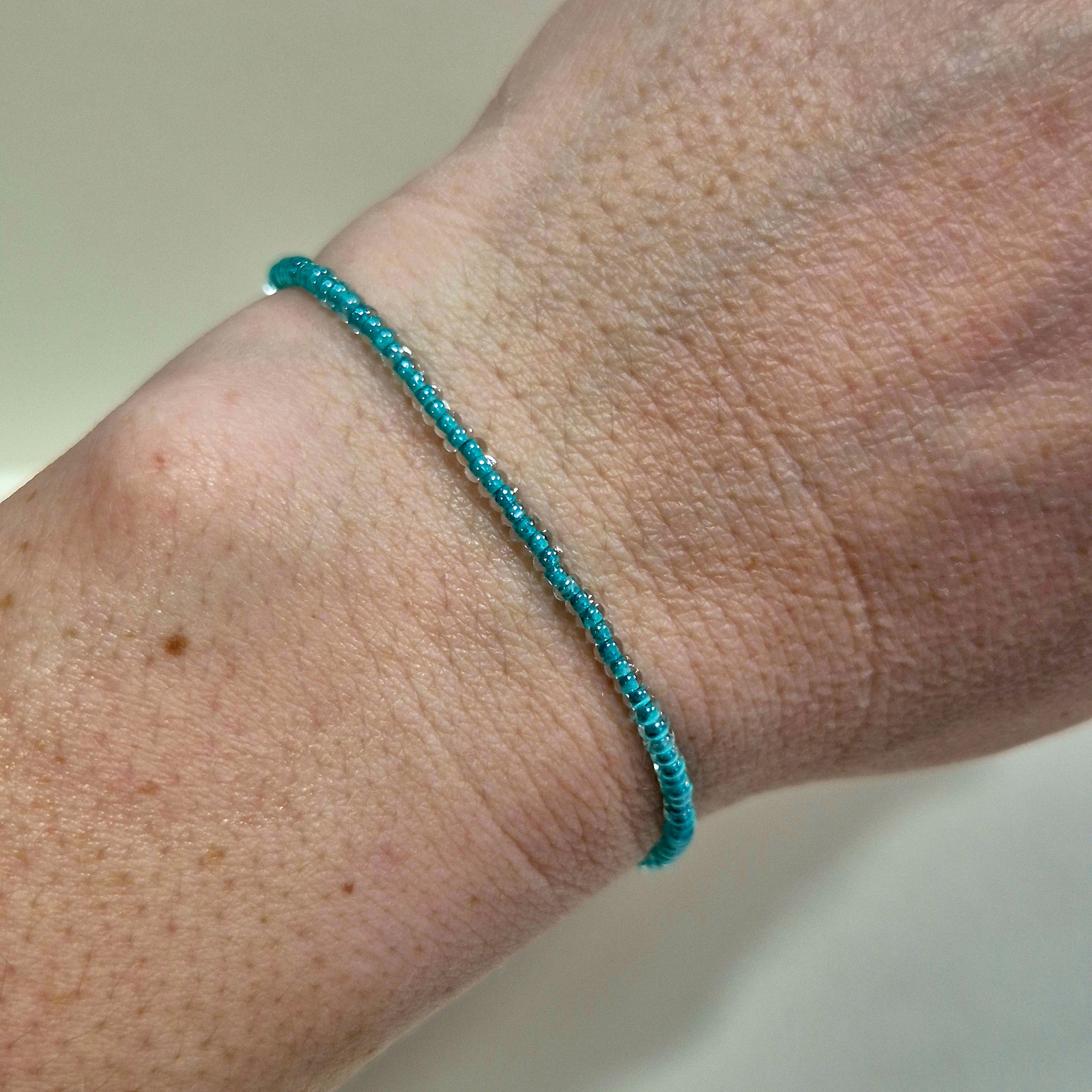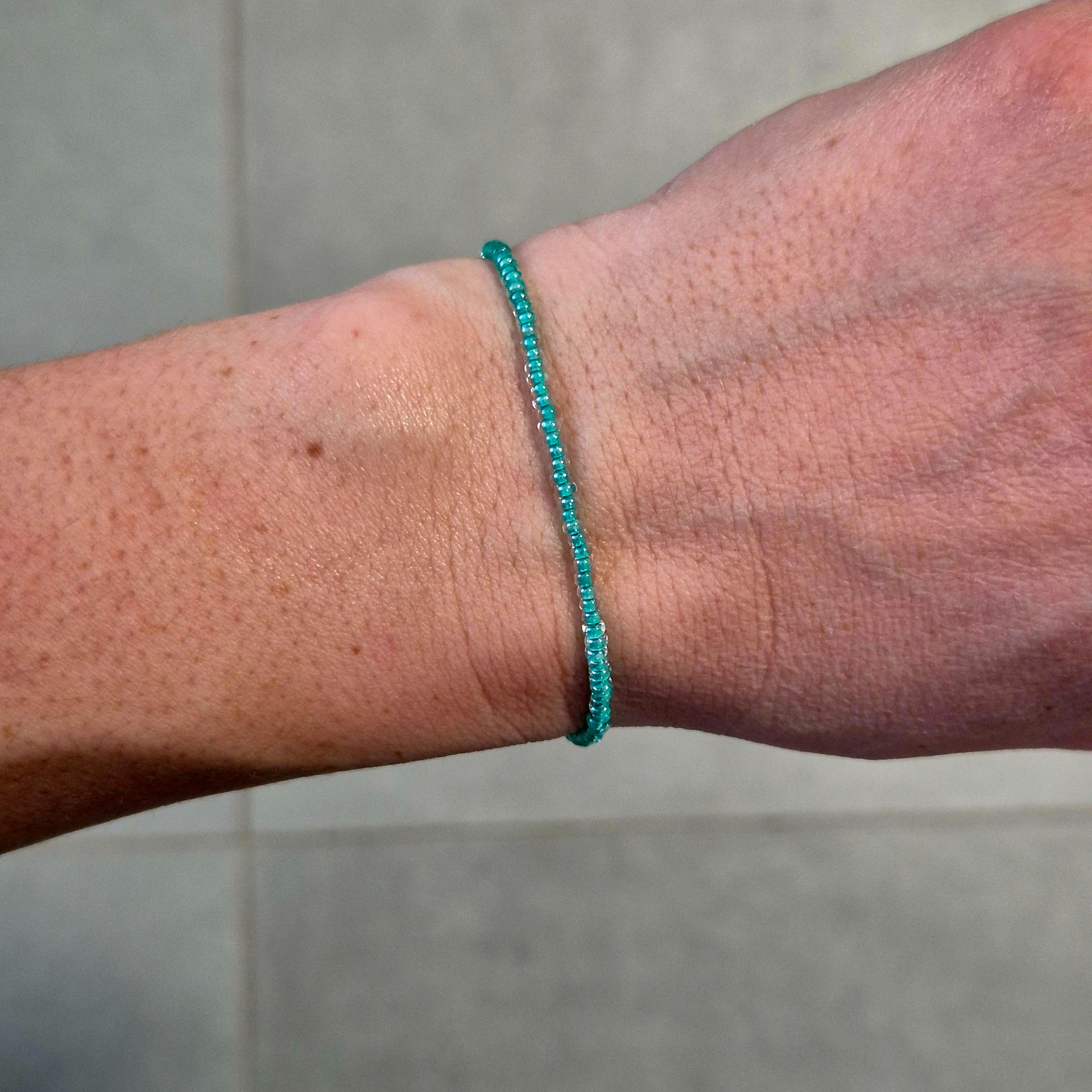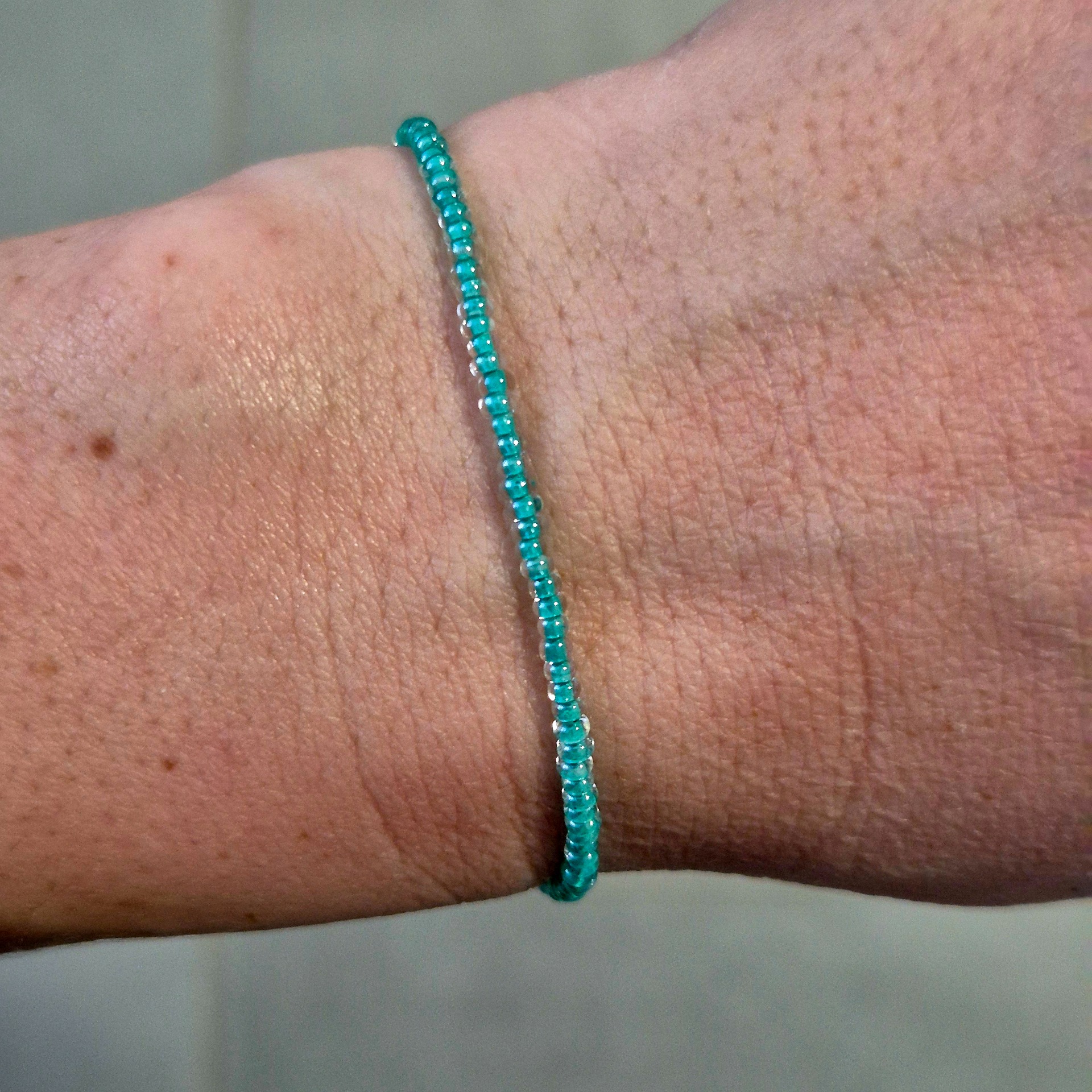 Jemný korálkový náramek v mentolovém odstínu, který působí svěže a klidně.