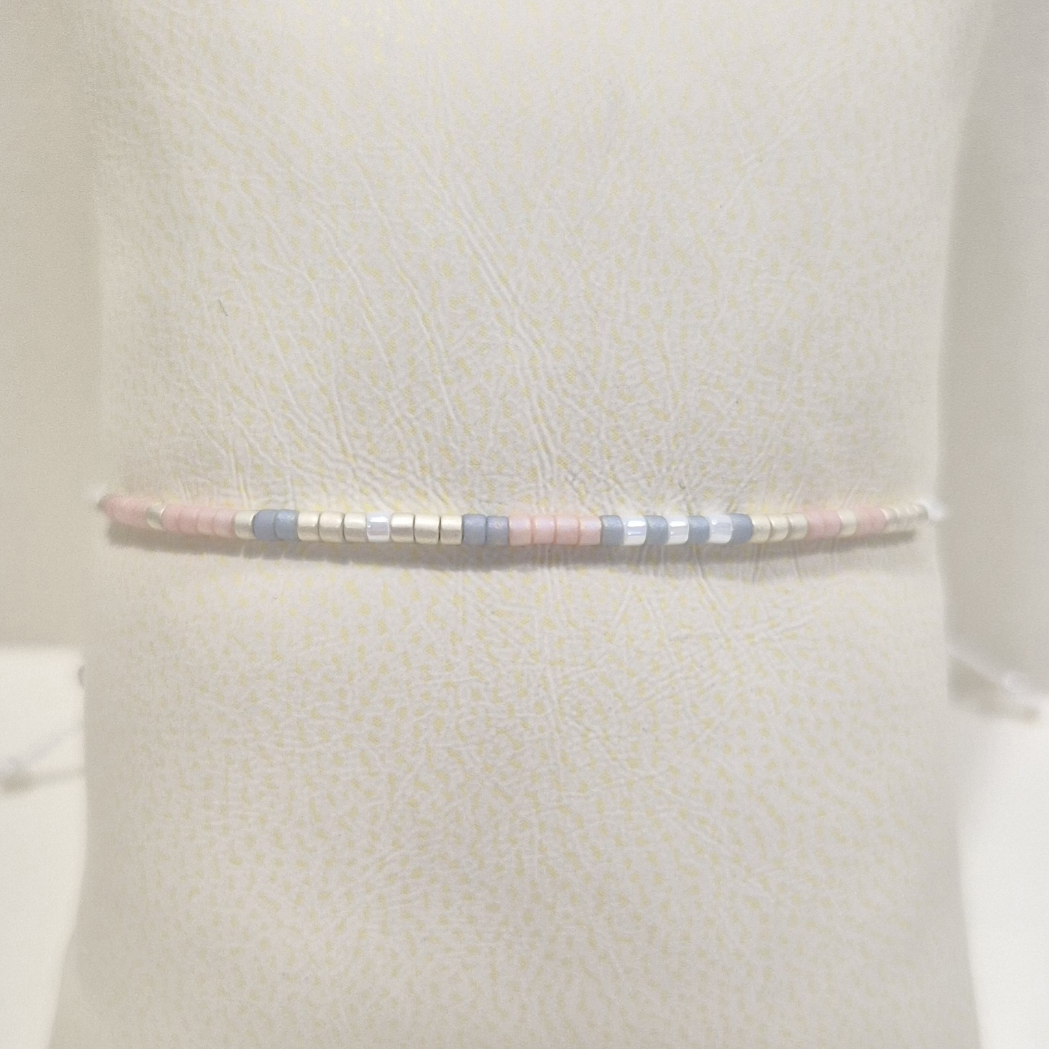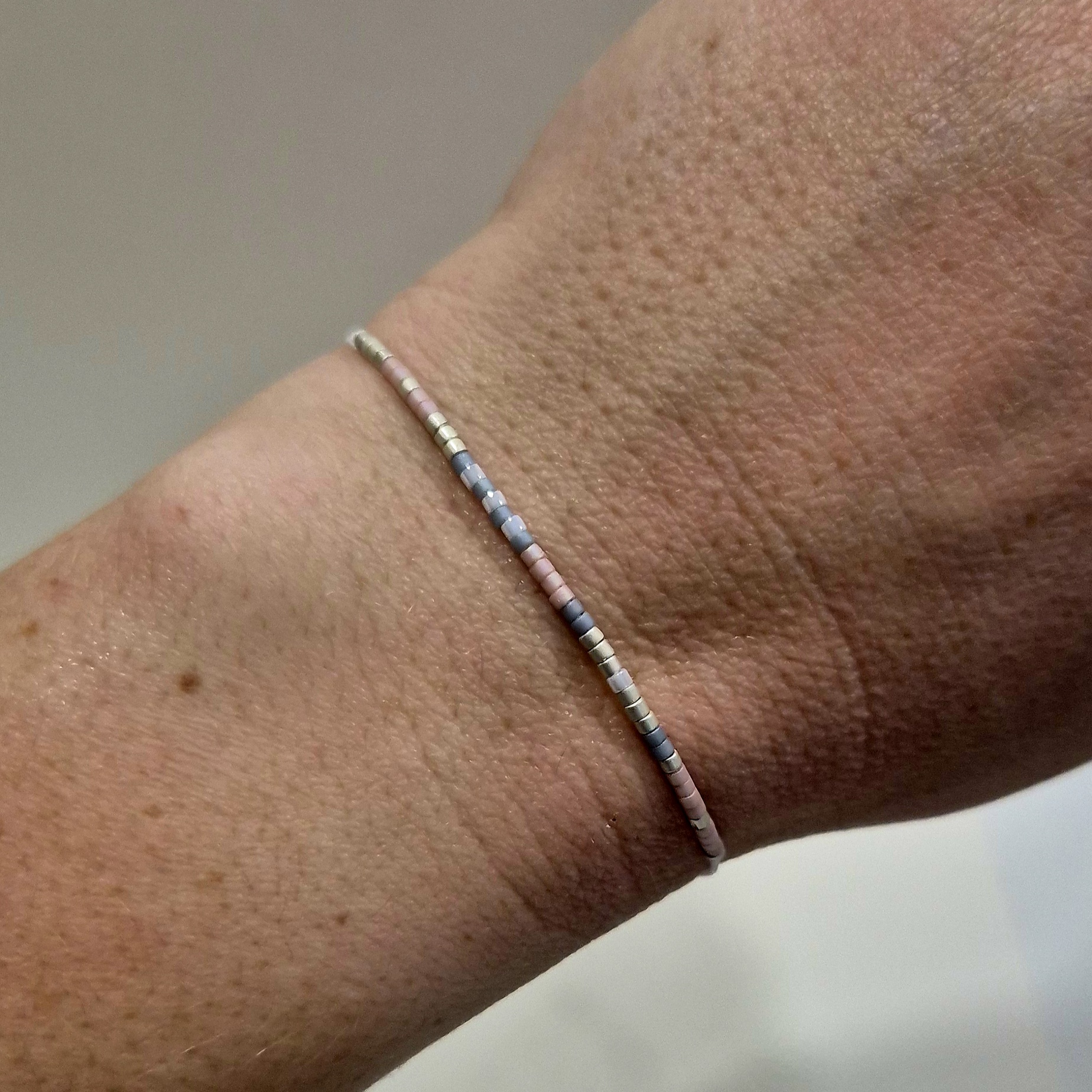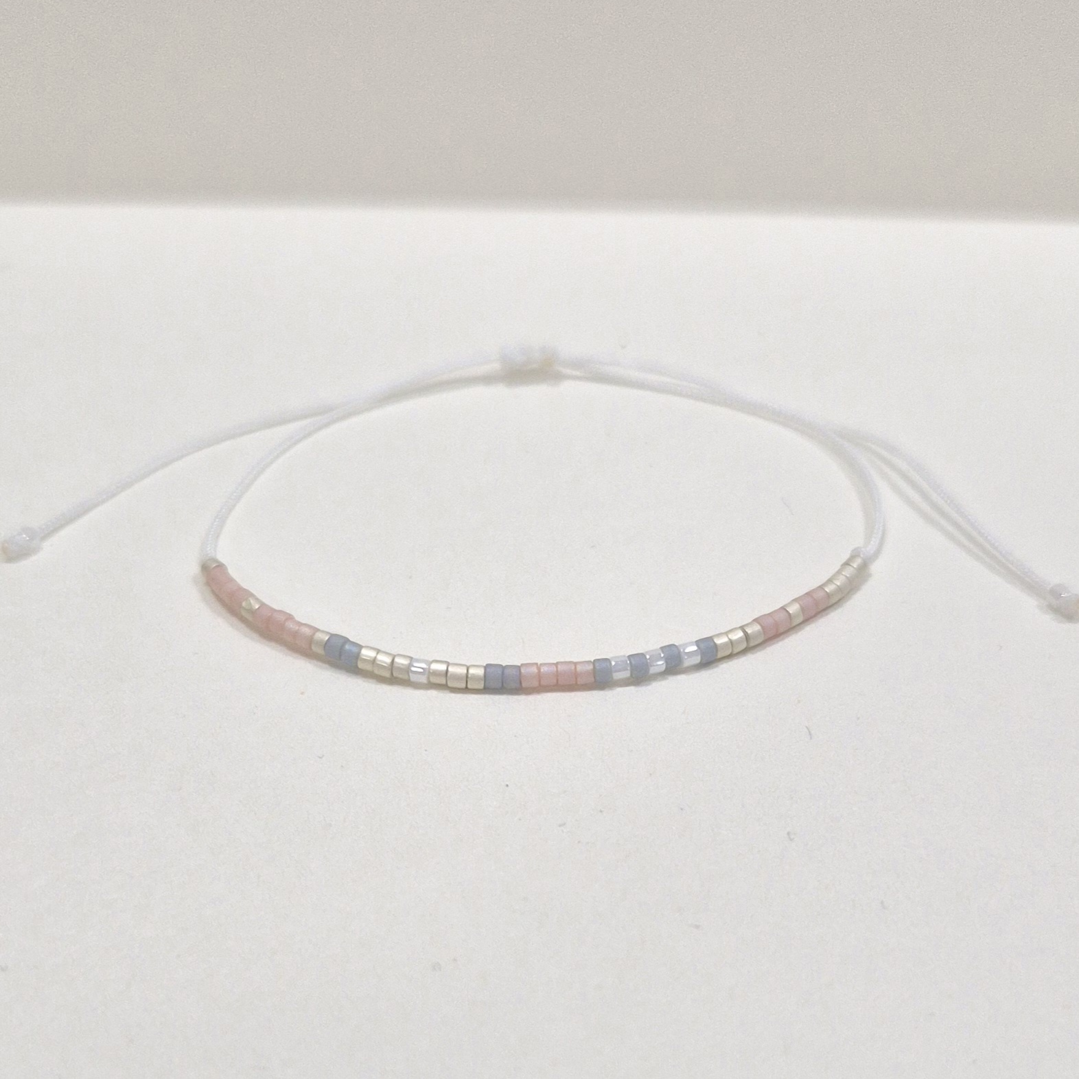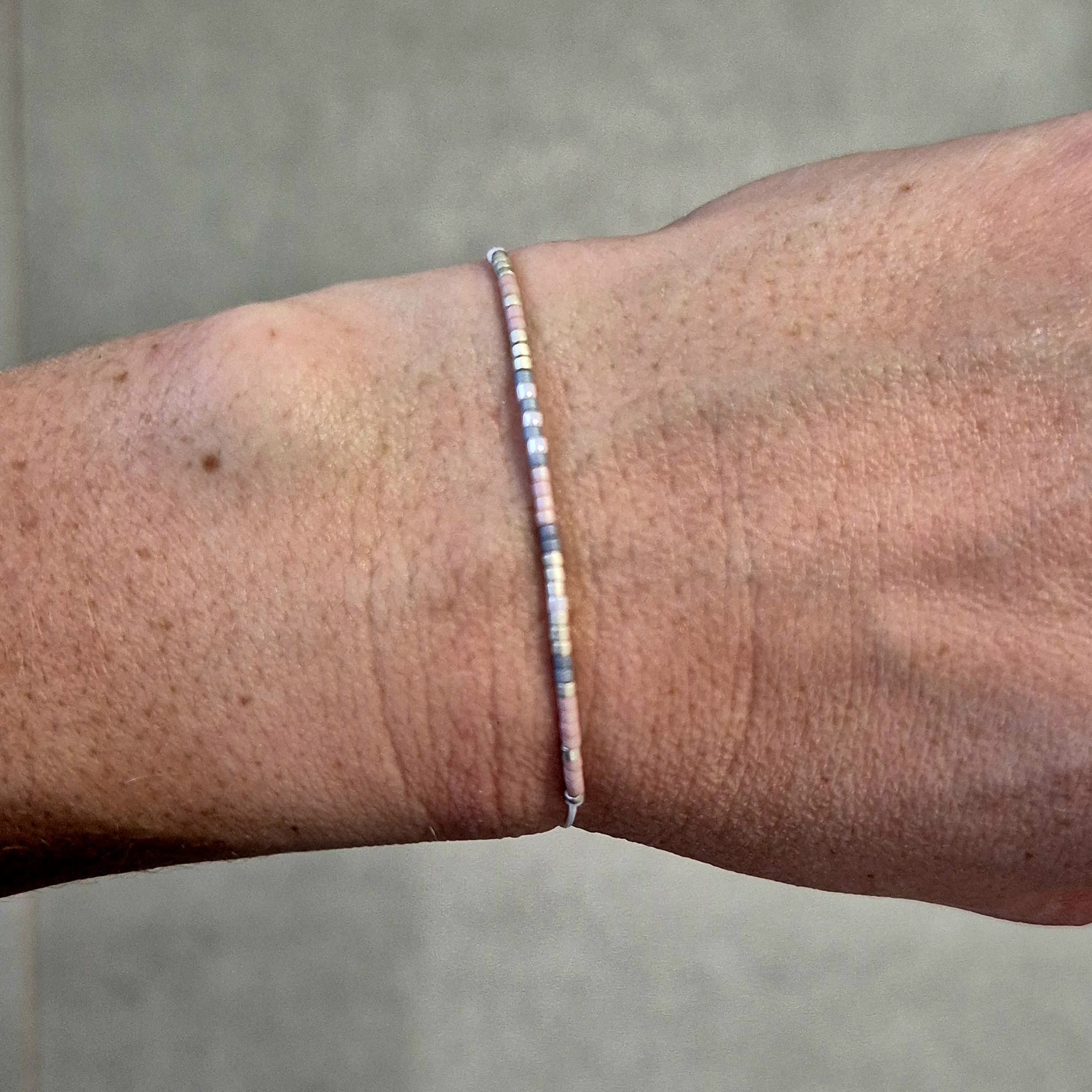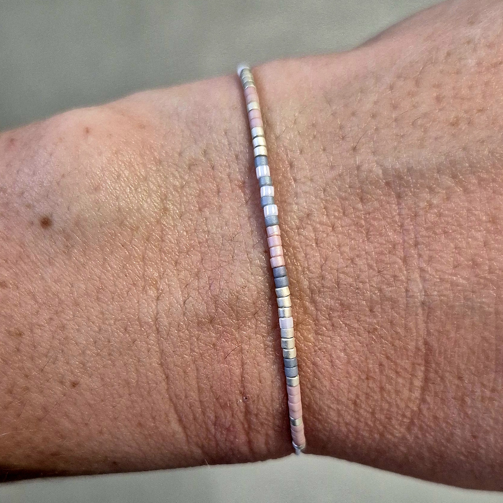 Minimalistický náramek na šňůrce zdobený drobnými japonskými korálky Miyuki Delica v krásných barevných kombinacích.