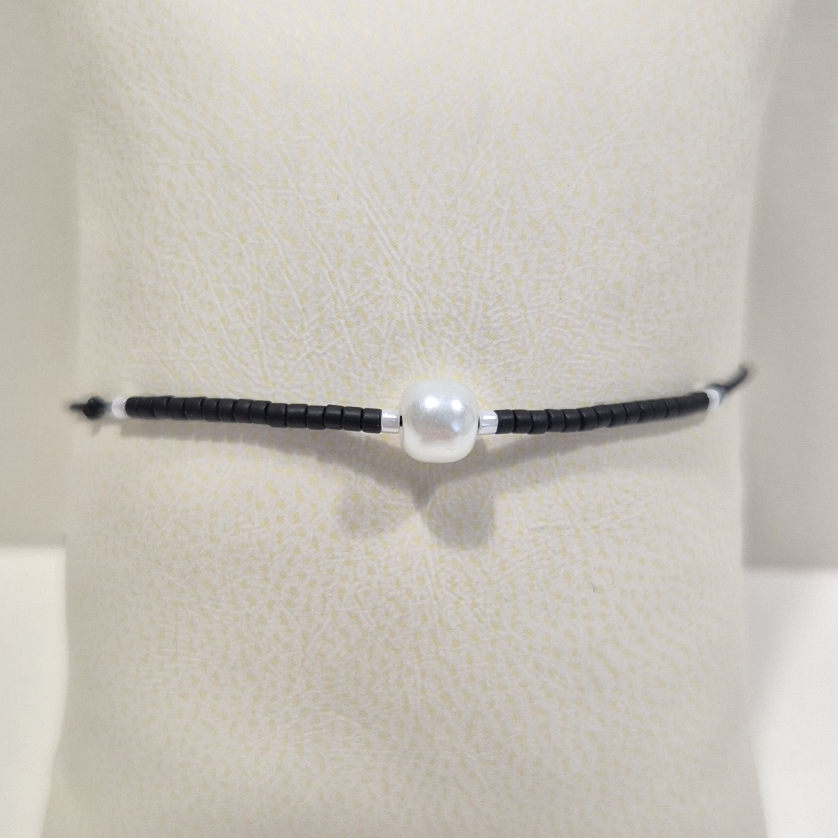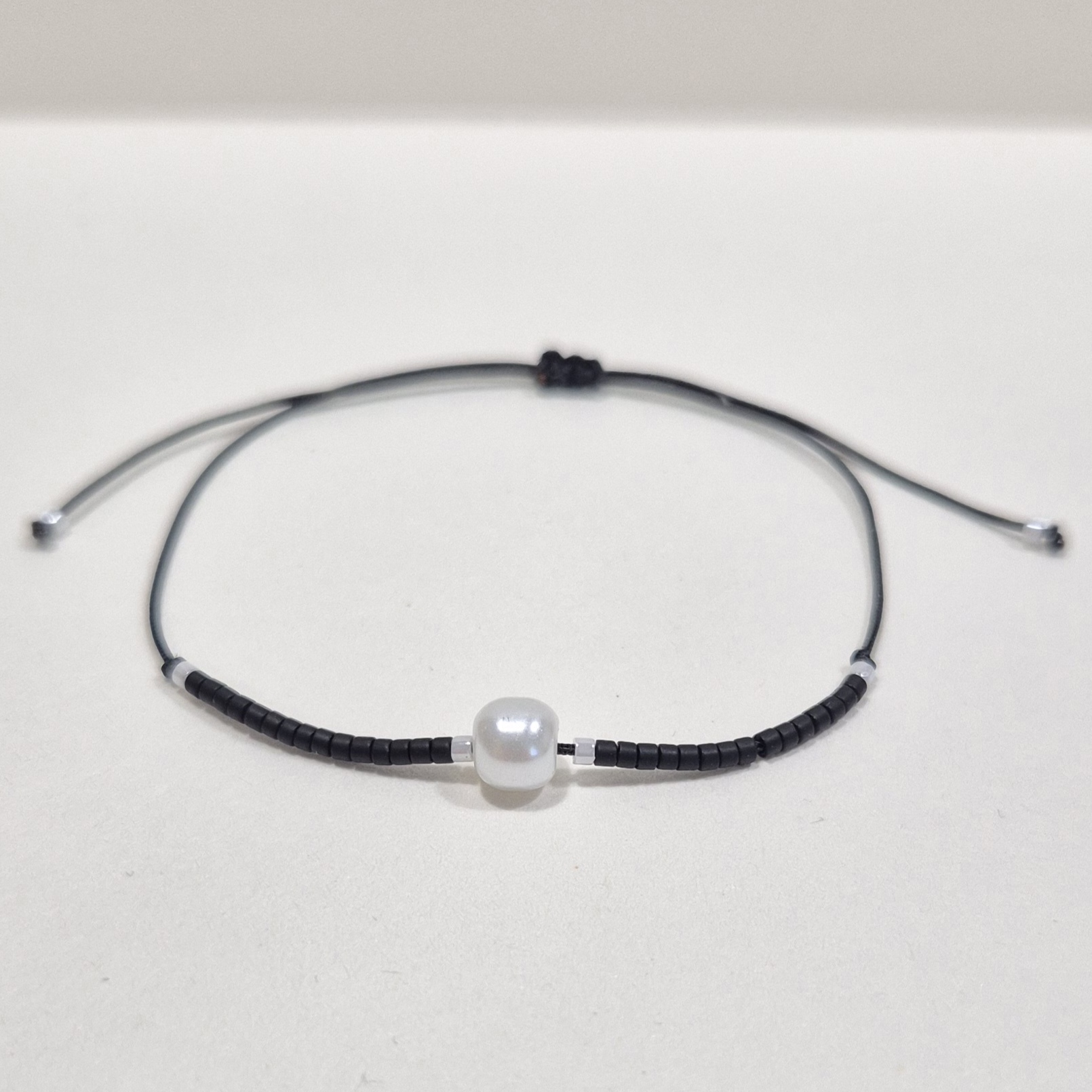 Použité materiály: Miyuki korálky, syntetický perleťový korálek, polyesterová šňůrka.