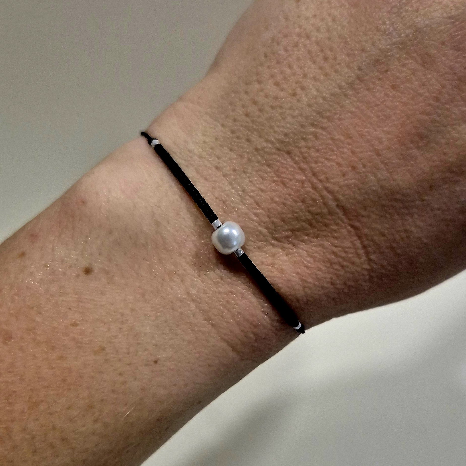 Minimalistický náramek na šňůrce zdobený drobnými japonskými korálky Miyuki Delica v krásných barevných kombinacích.