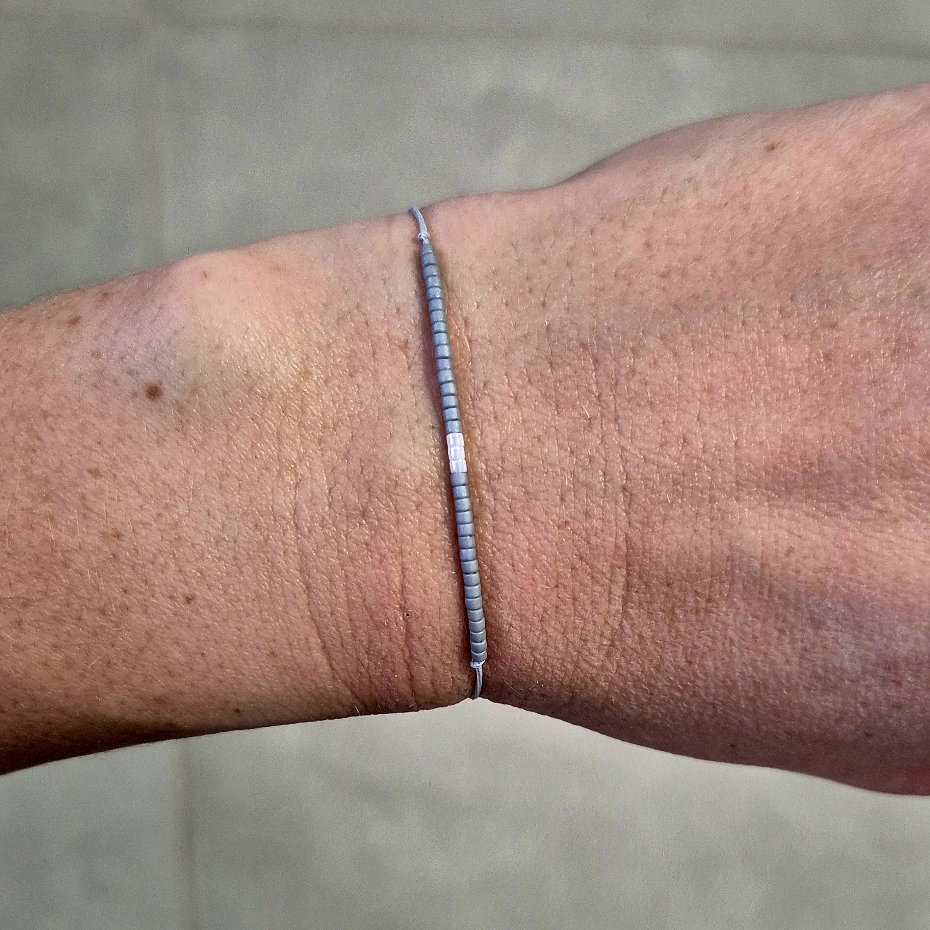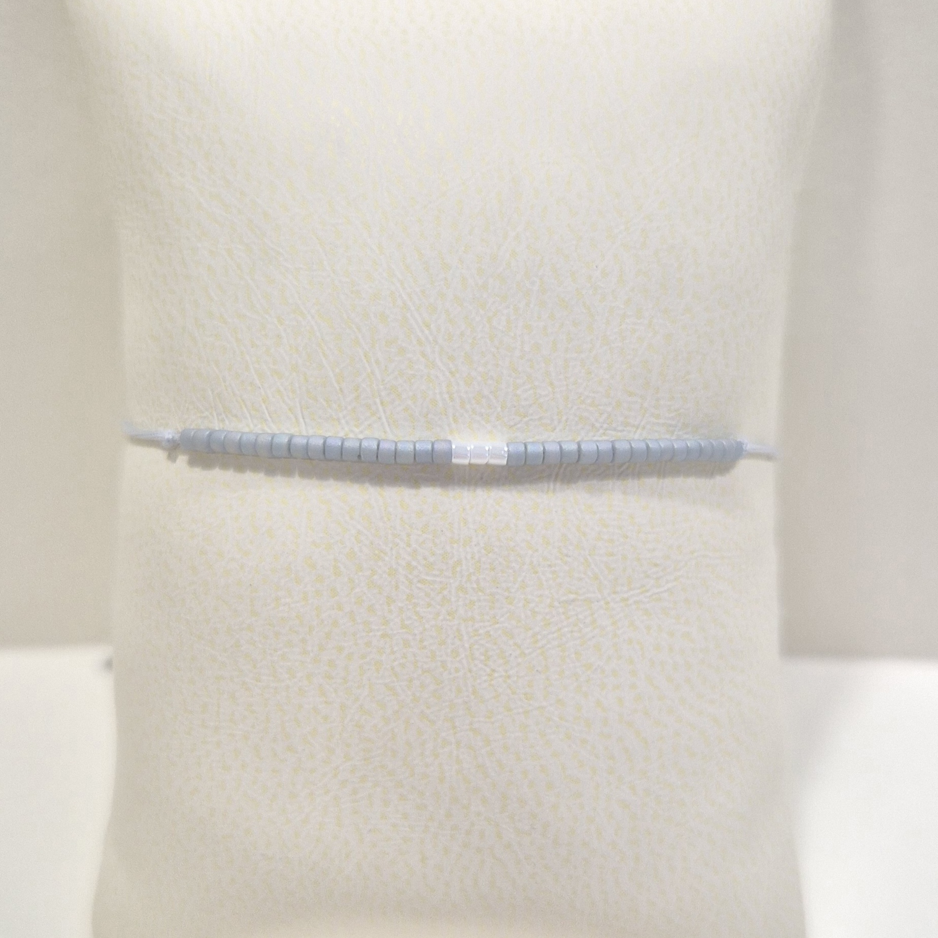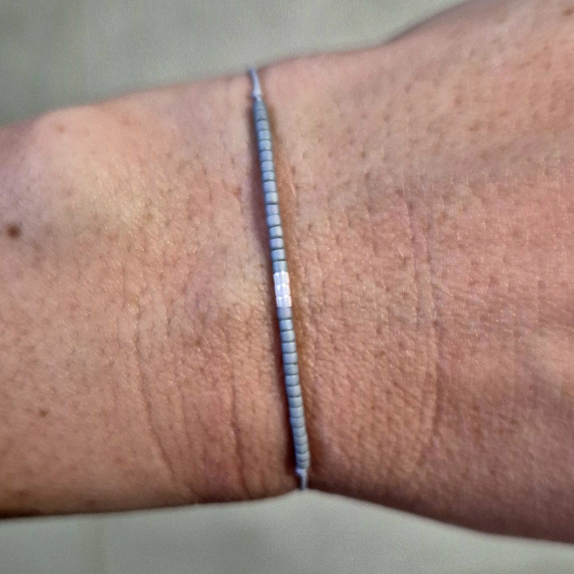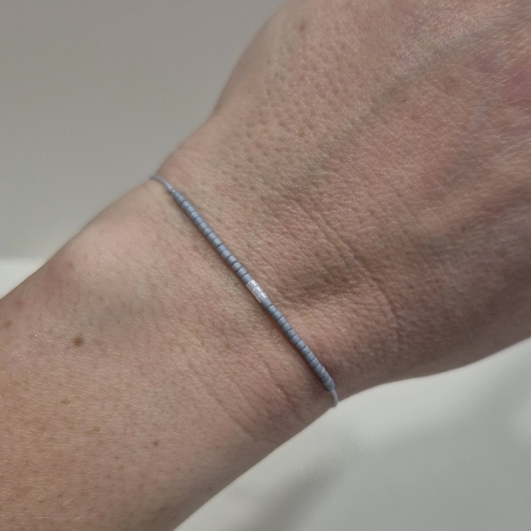 Minimalistický náramek na šňůrce zdobený drobnými japonskými korálky Miyuki Delica v krásných barevných kombinacích.