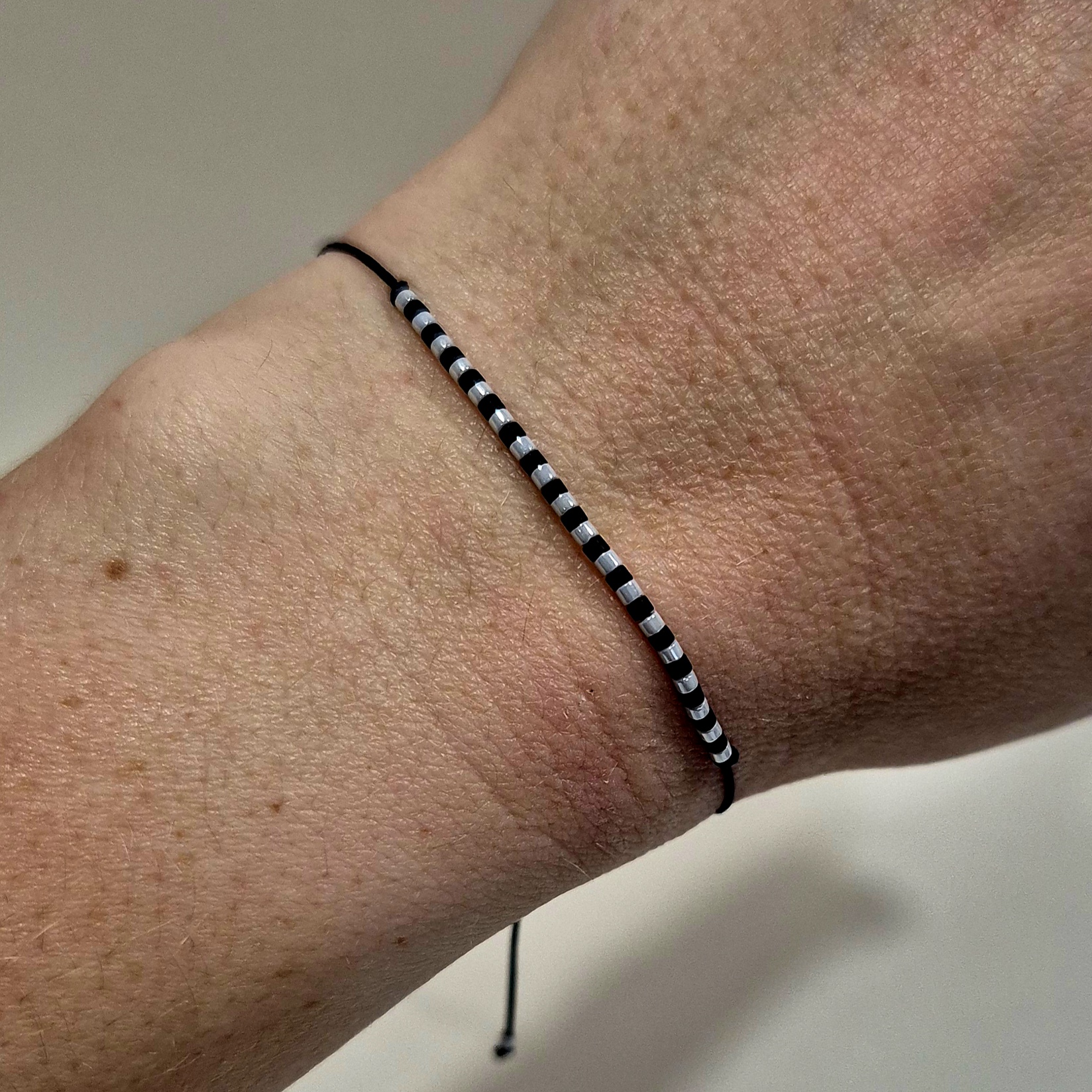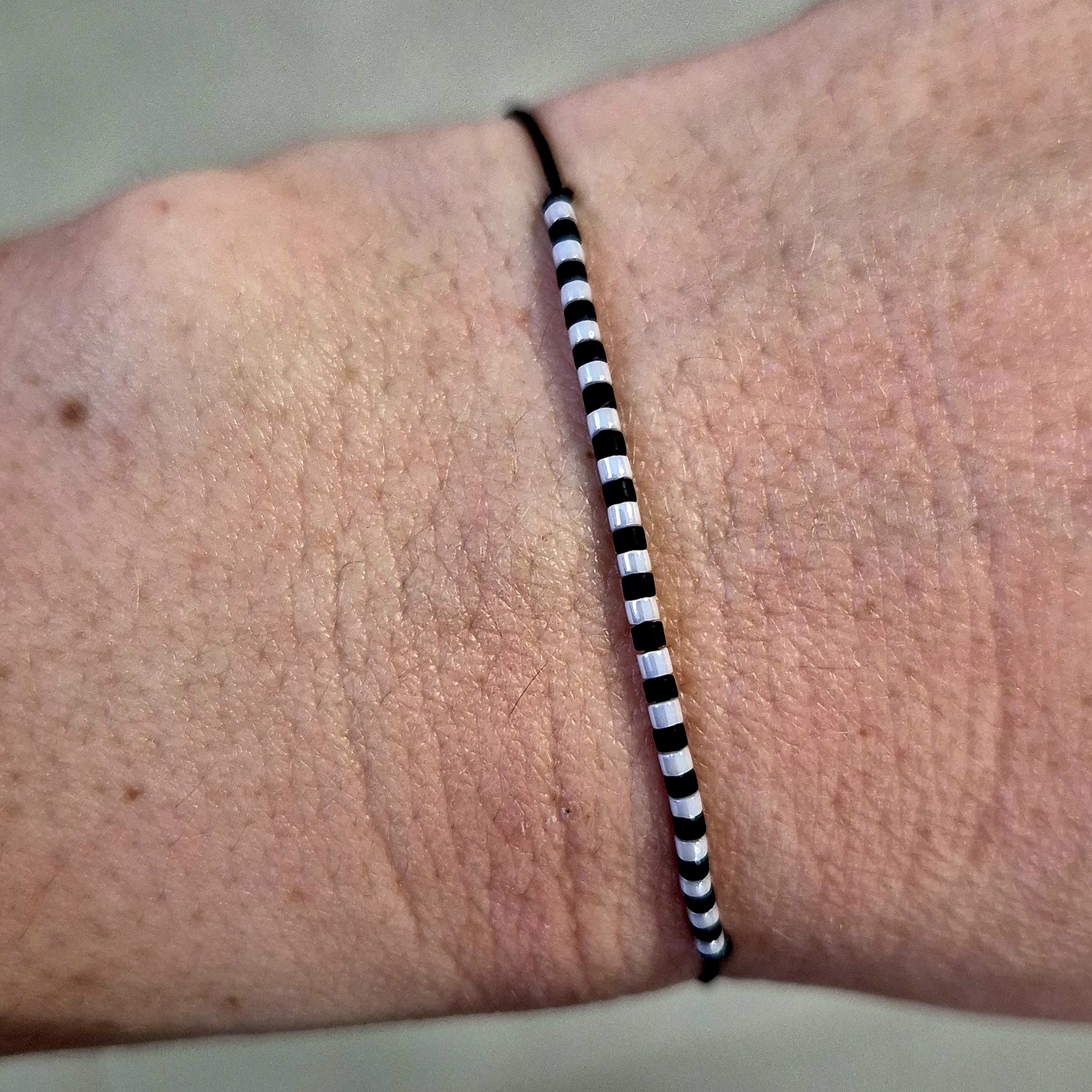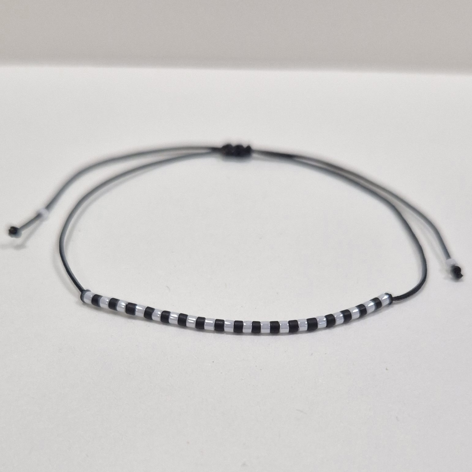 Minimalistický náramek na šňůrce zdobený drobnými japonskými korálky Miyuki Delica v krásných barevných kombinacích.