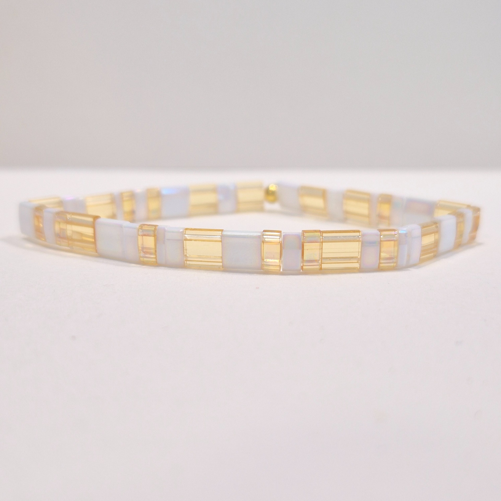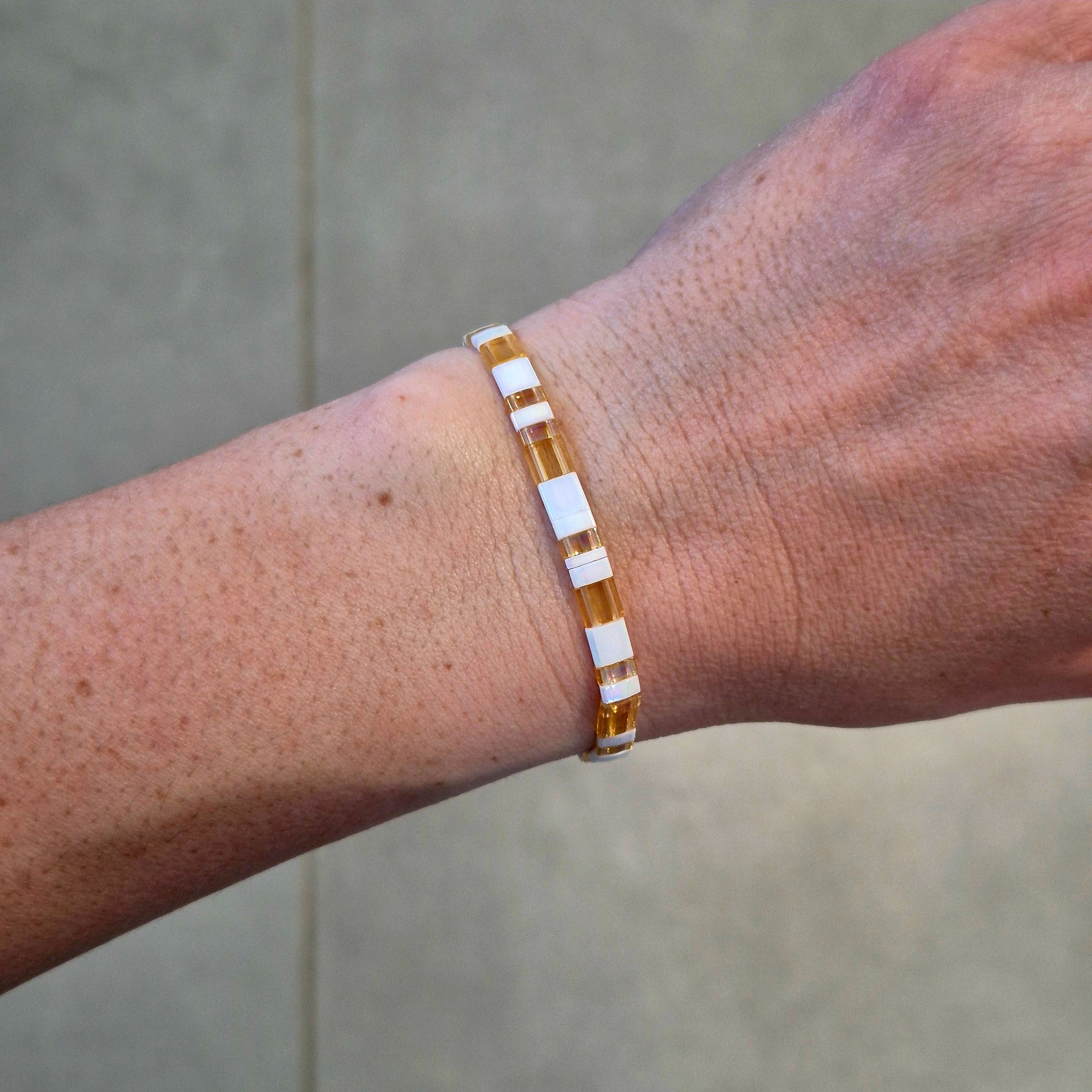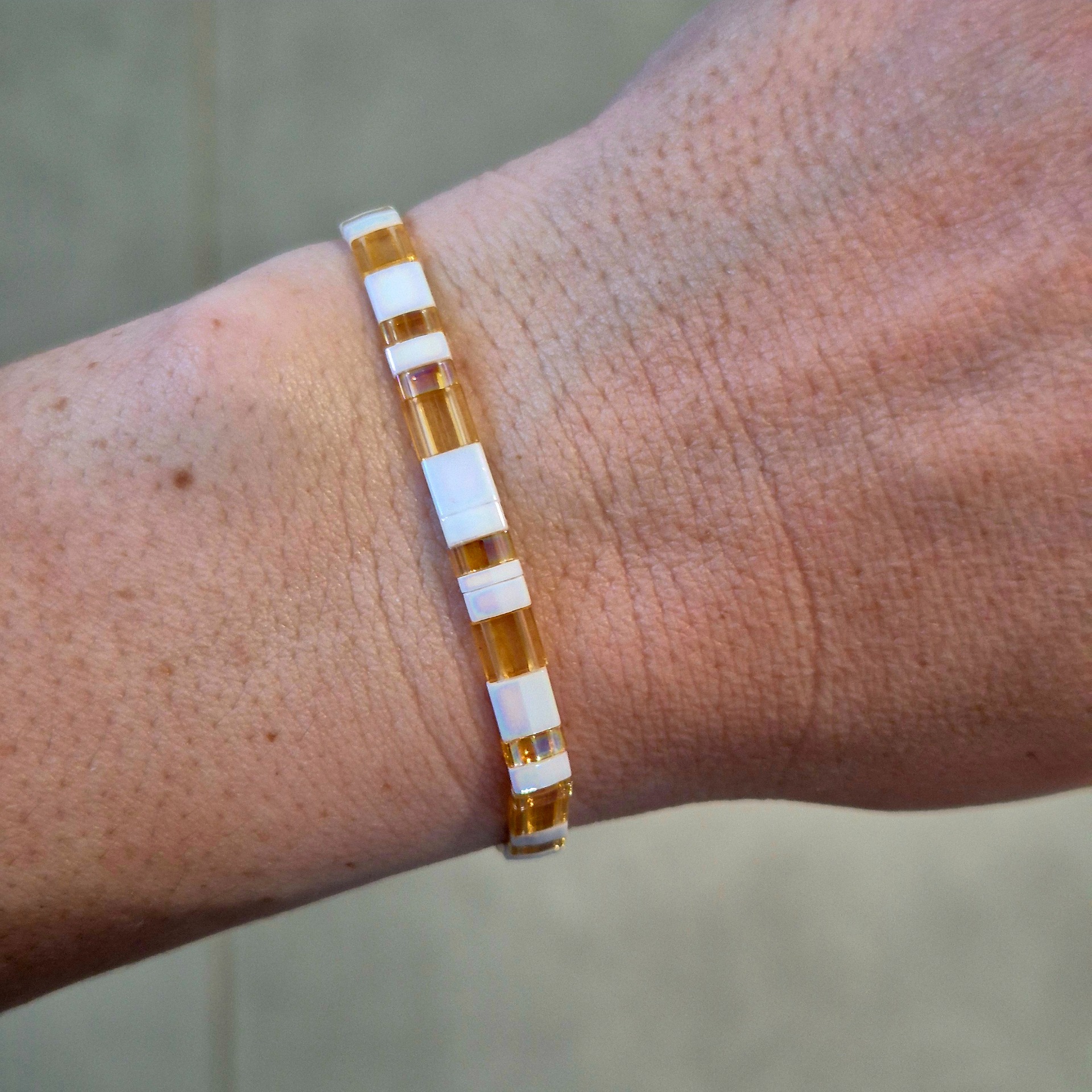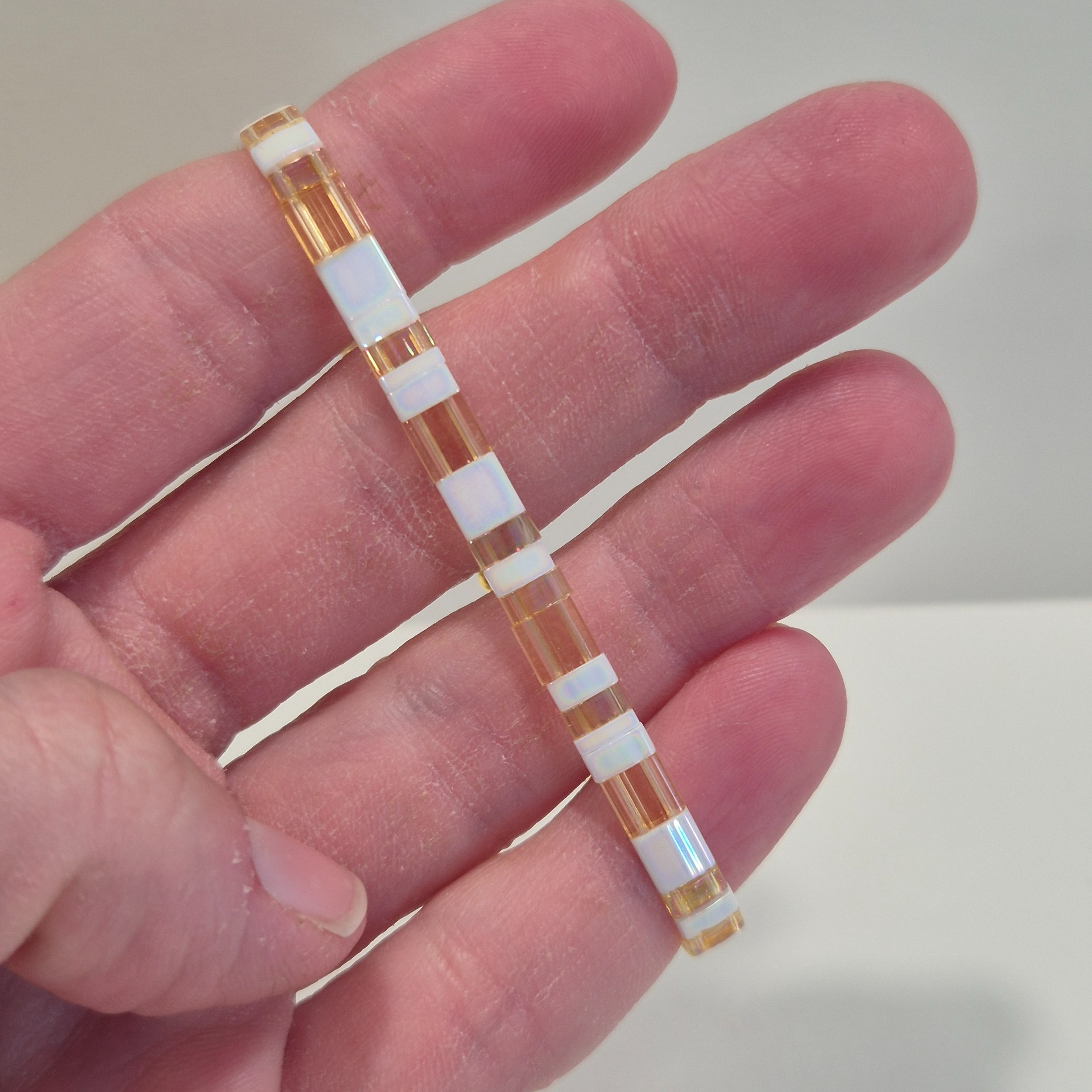 Jemný Miyuki náramek v kombinaci bílé a topazově zlaté.