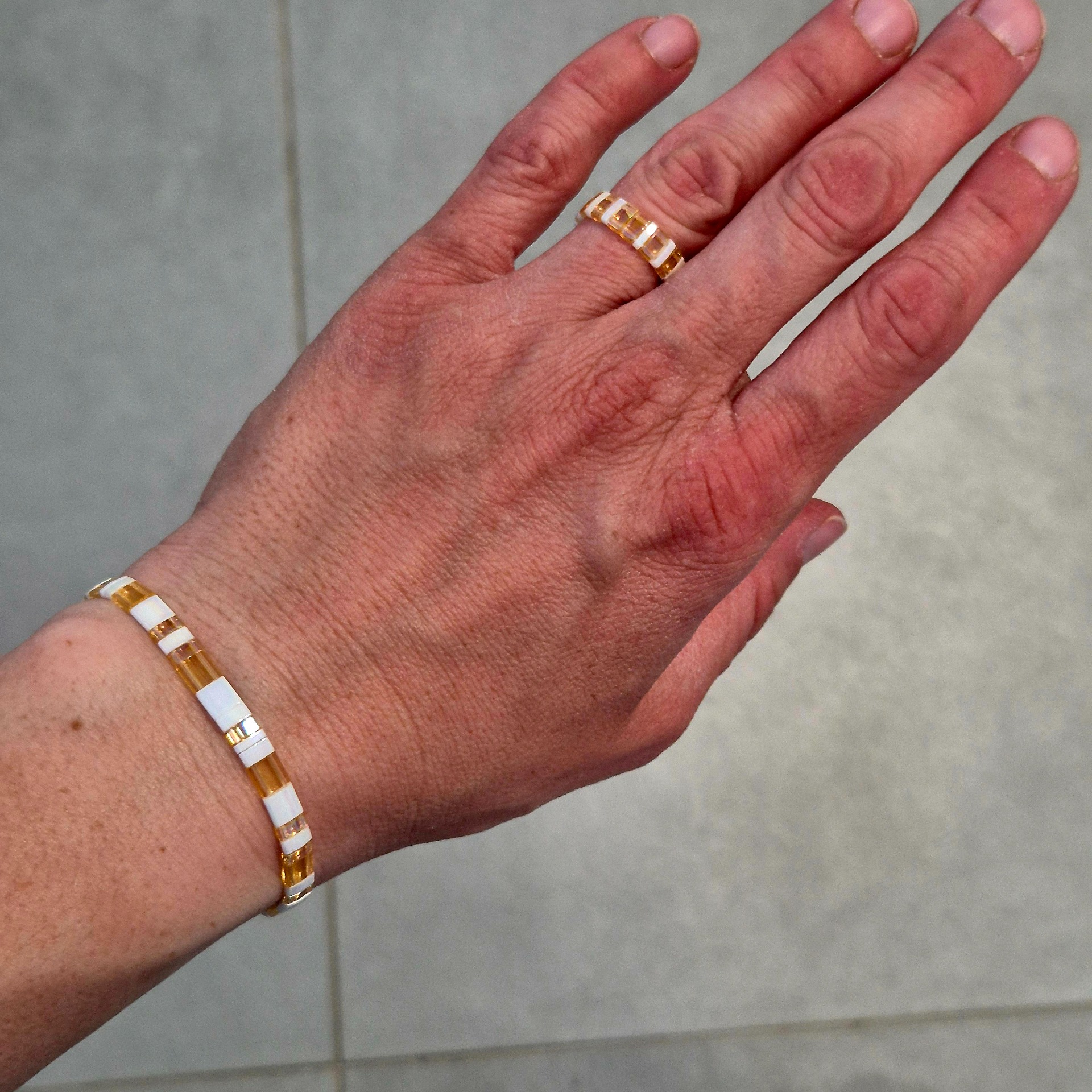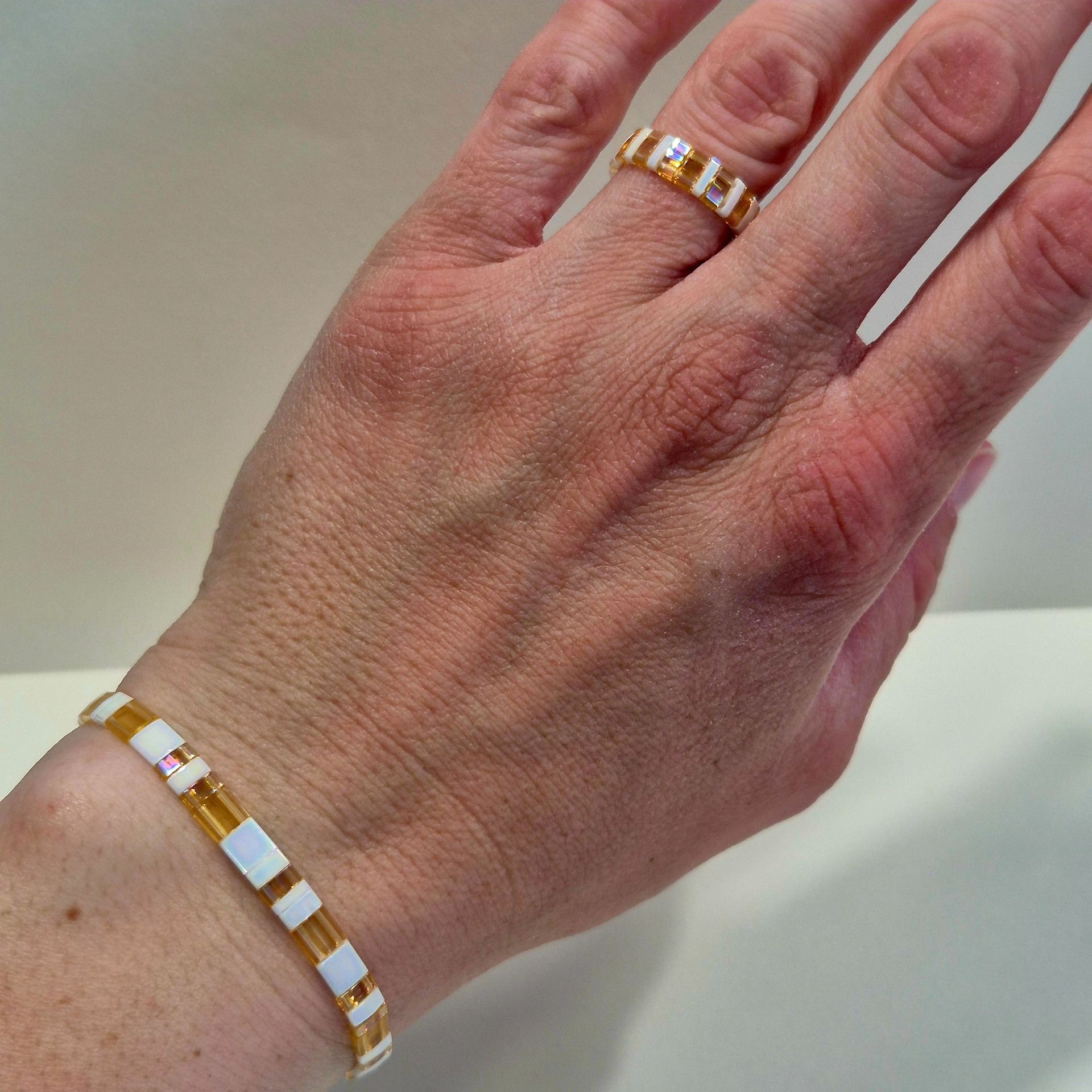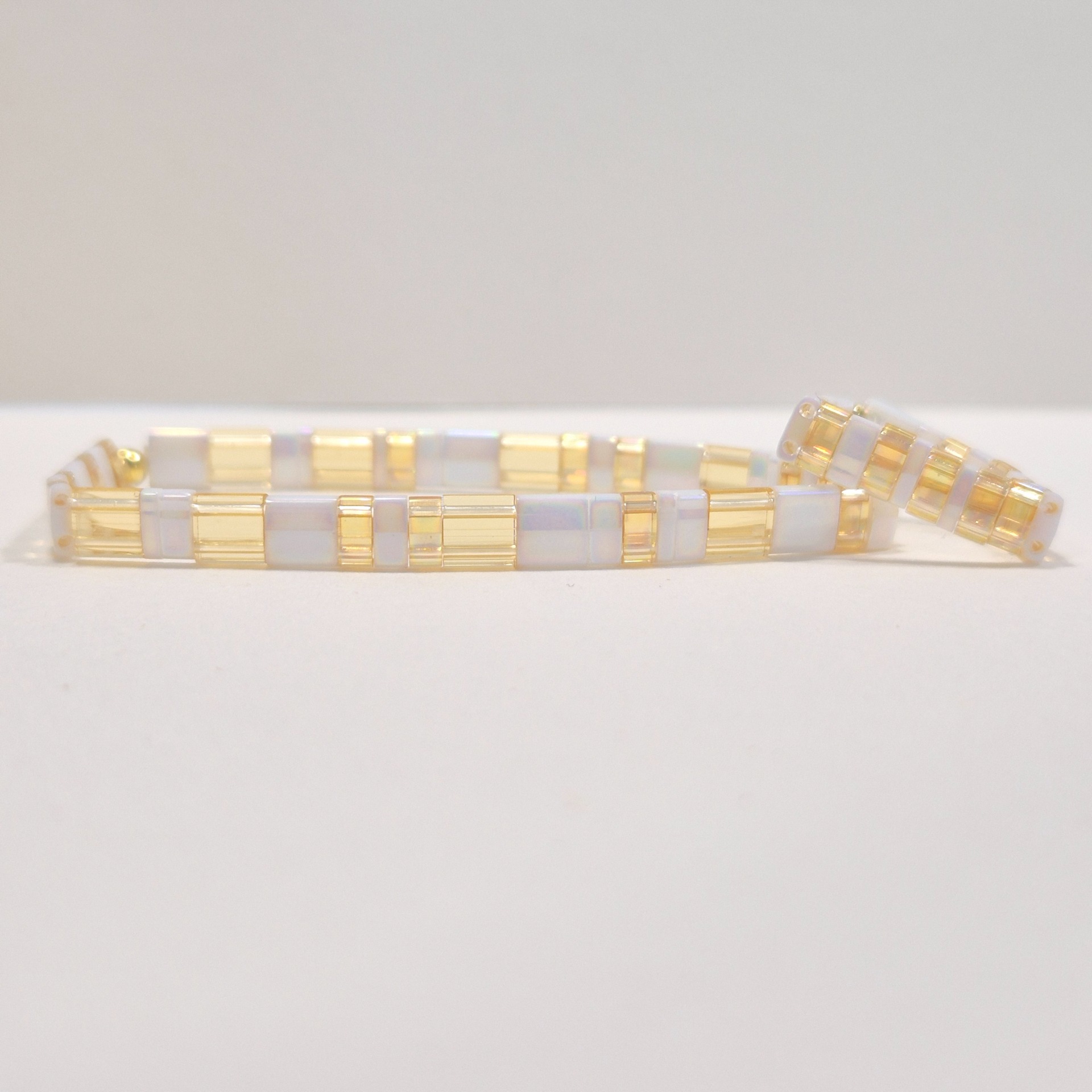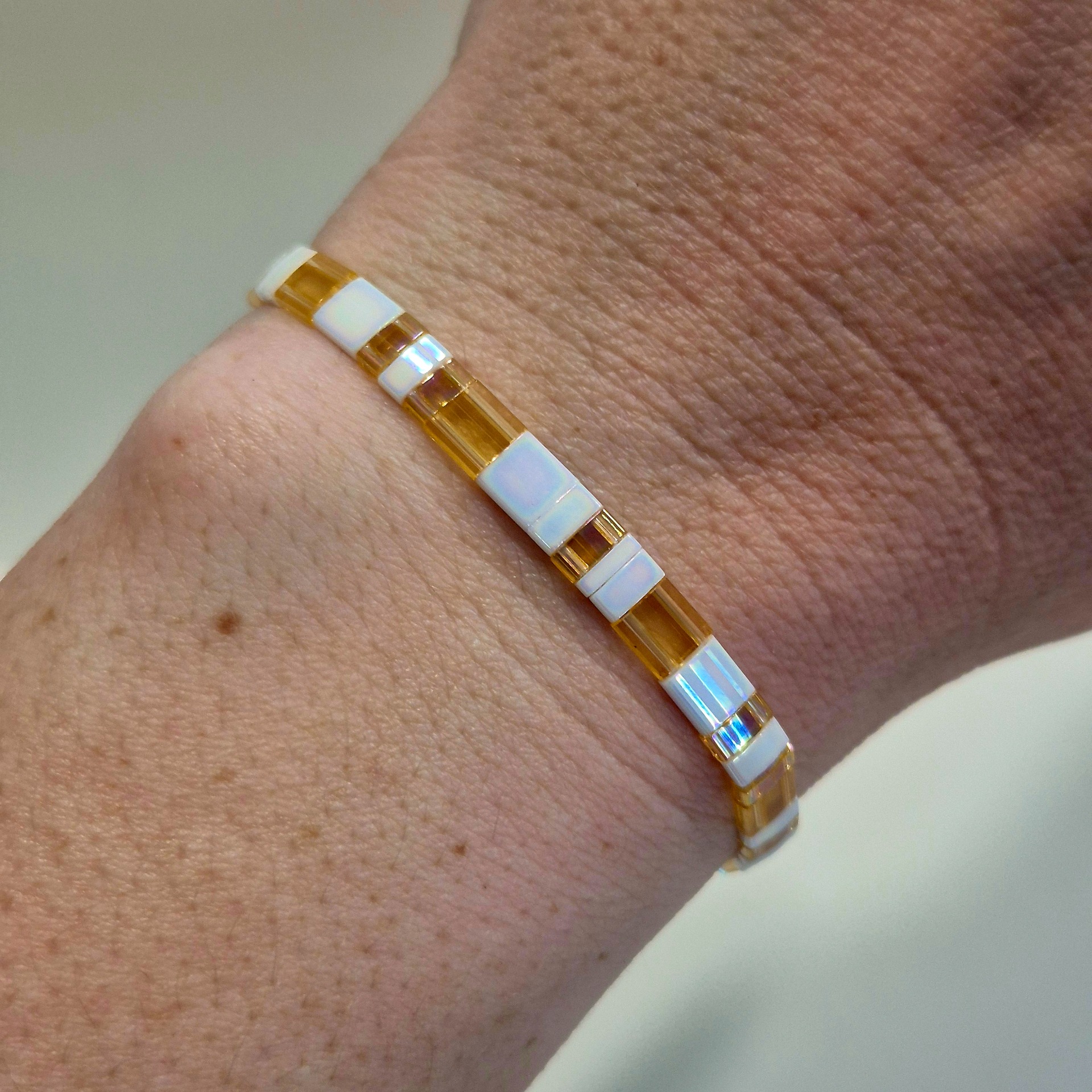 Jemný Miyuki náramek v kombinaci bílé a topazově zlaté.