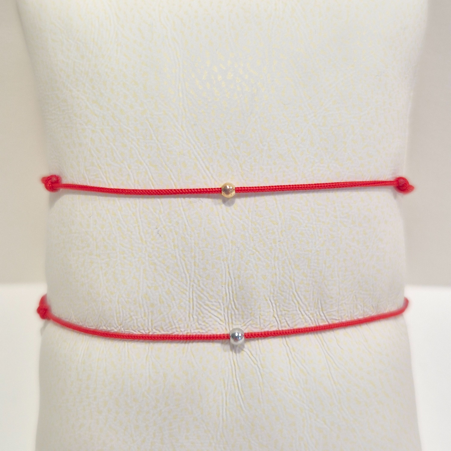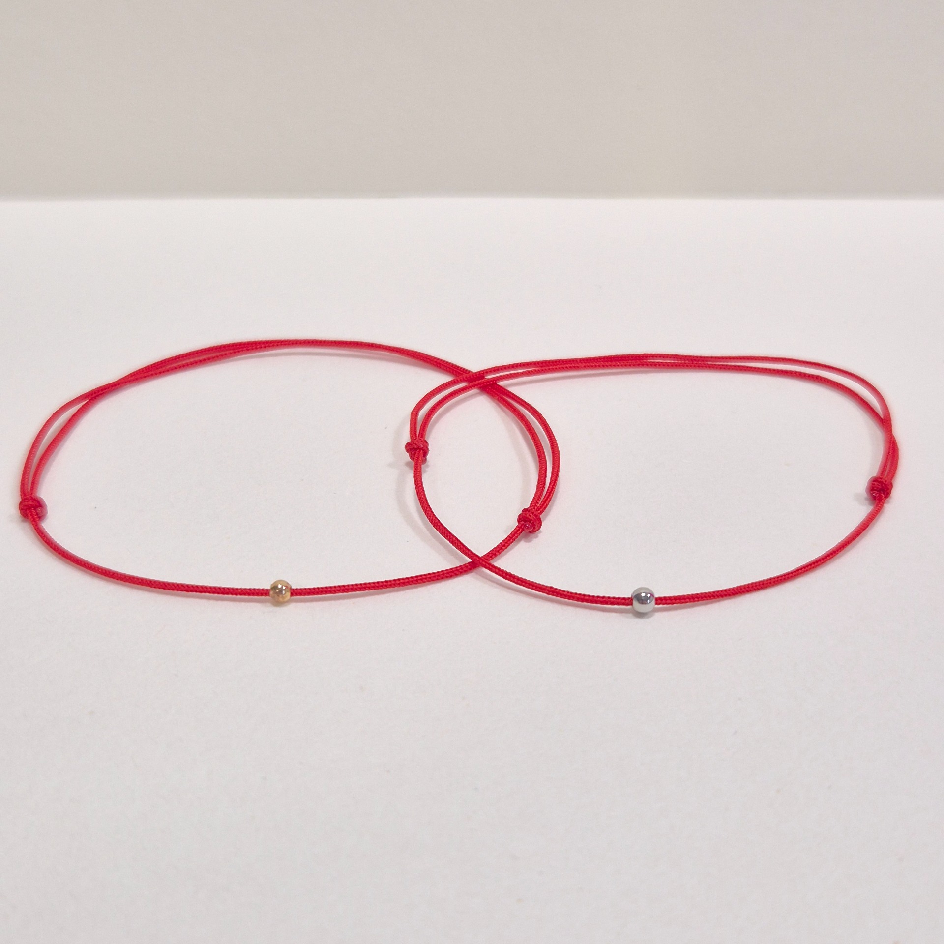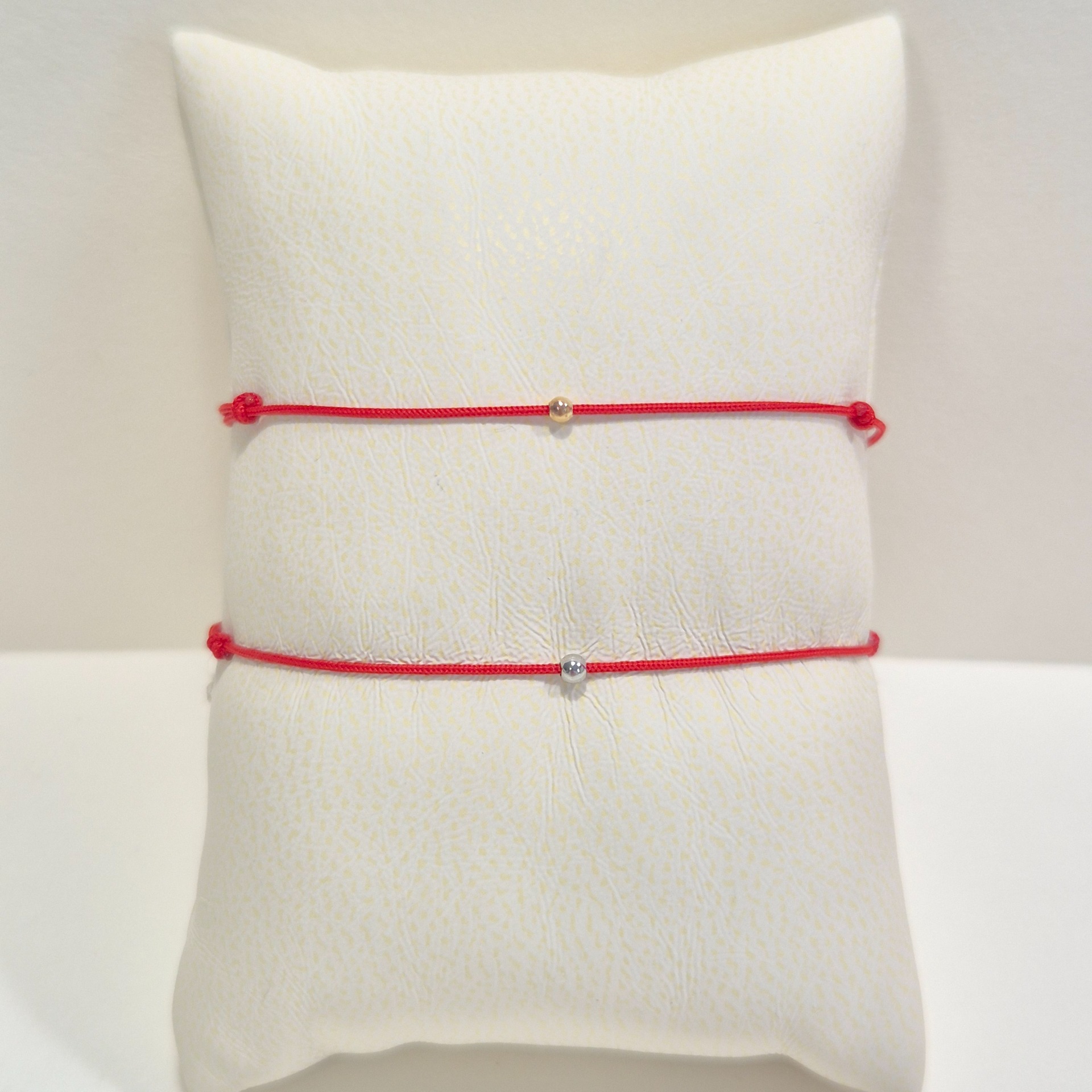 Náramky jsou vyrobeny z kvalitní polyesterové šňůrky, která je příjemná na nošení a odolná při každodenním používání. Dominantou je drobný kovový detail – kulička – která náramku dodává jemný význam i nadčasový vzhled.