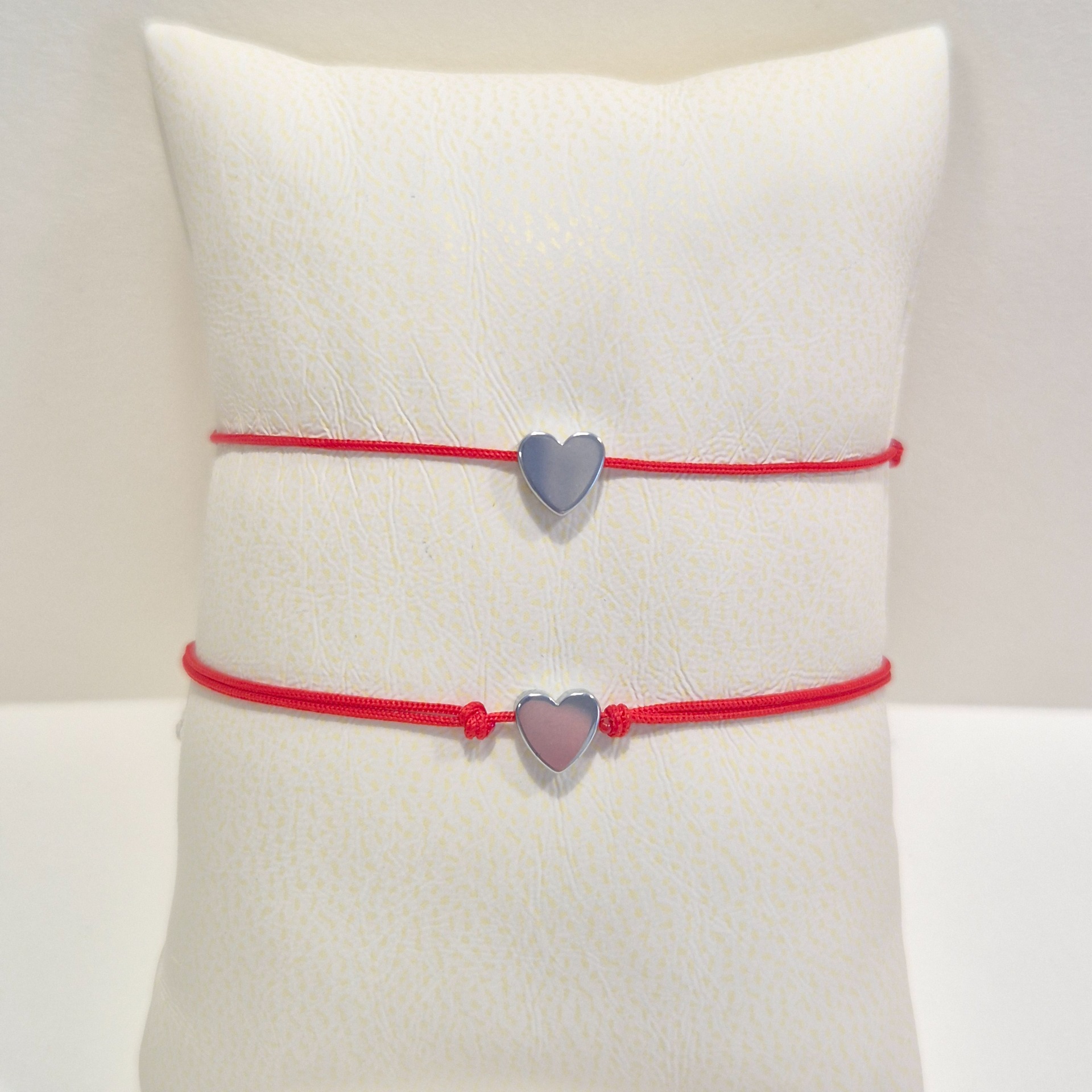 Náramky jsou vyrobeny z kvalitní polyesterové šňůrky, která je příjemná na nošení a odolná při každodenním používání. Dominantou je drobný kovový detail – srdíčko – které náramku dodává jemný význam i nadčasový vzhled.