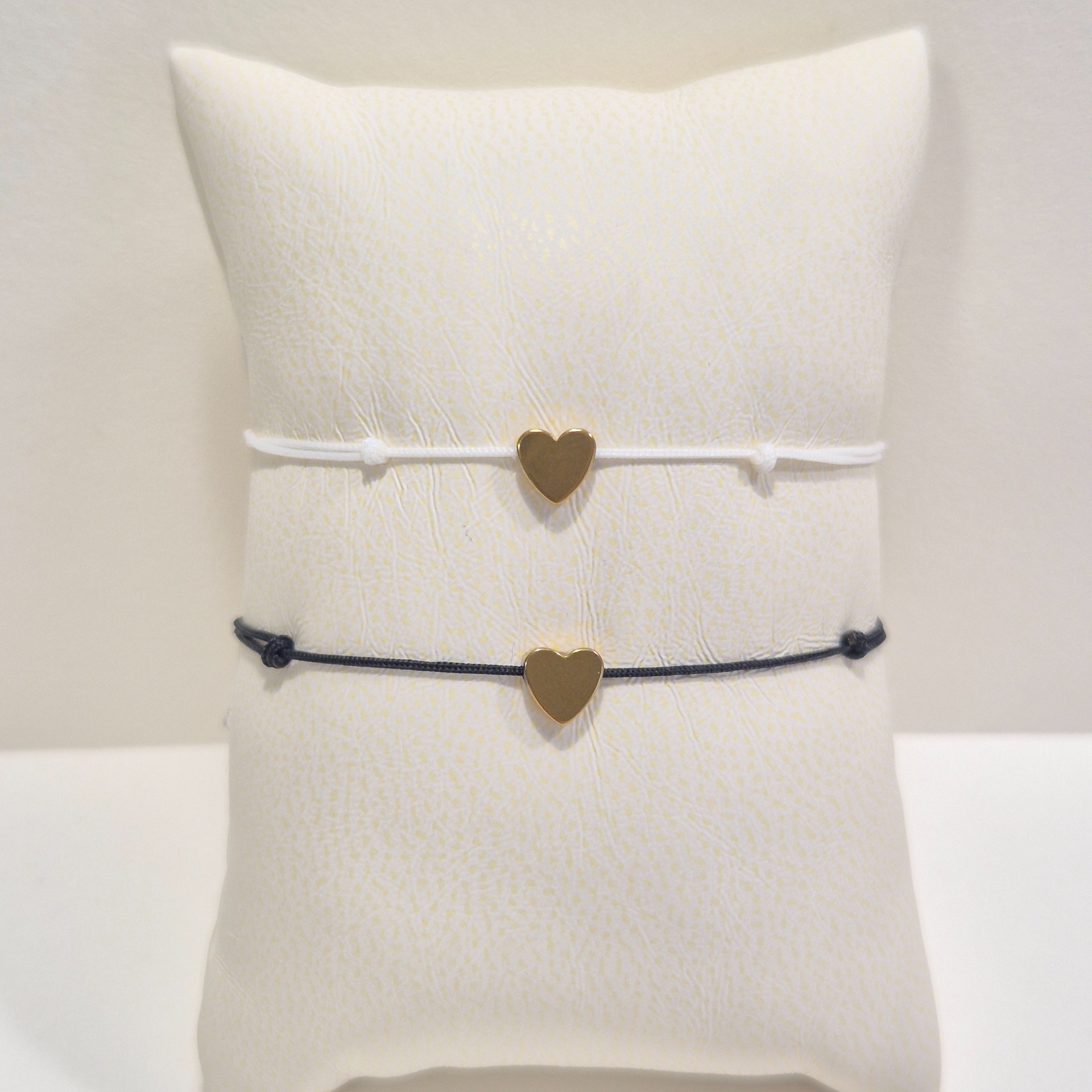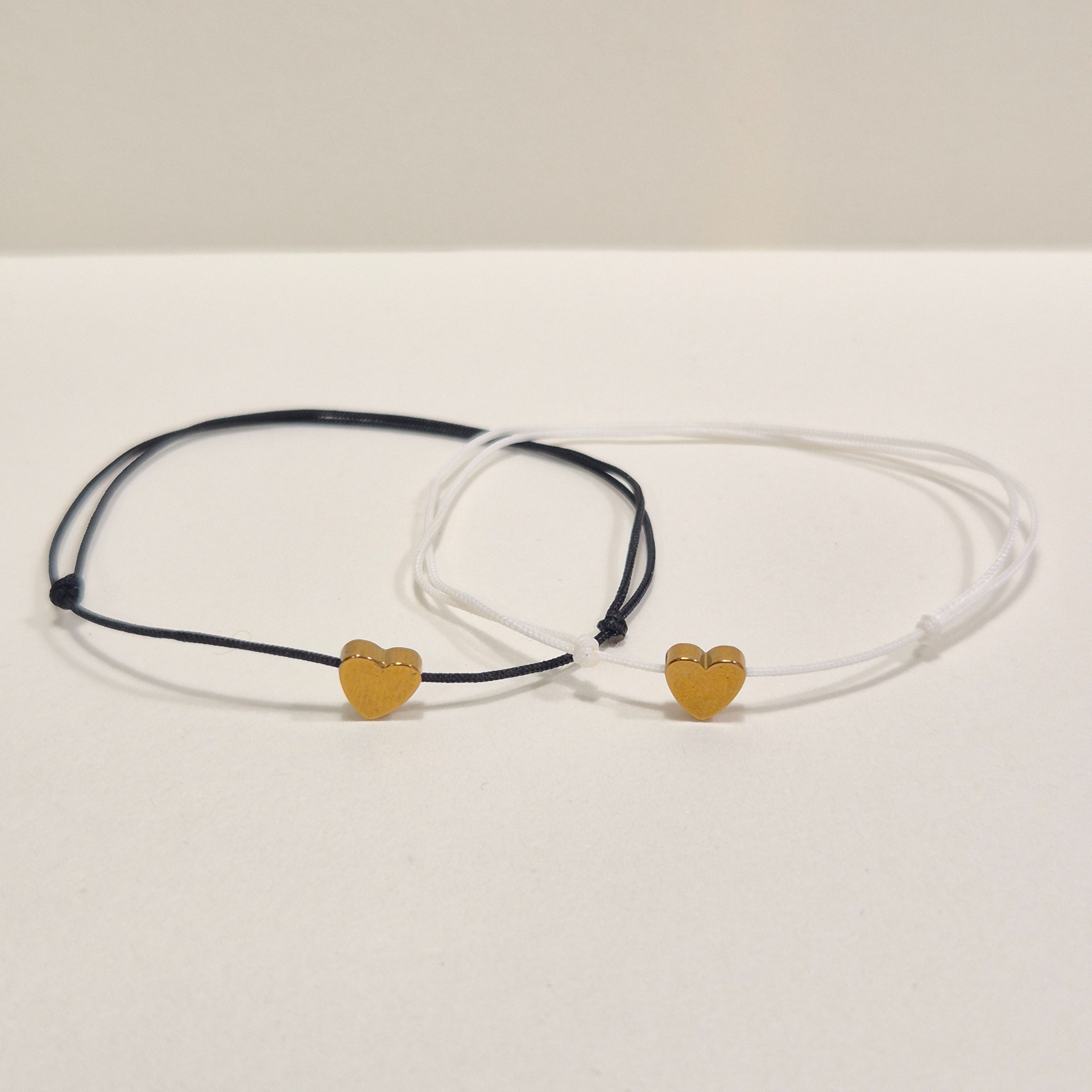 Náramky jsou vyrobeny z kvalitní polyesterové šňůrky, která je příjemná na nošení a odolná při každodenním používání. Dominantou je drobný kovový detail – srdíčko – které náramku dodává jemný význam i nadčasový vzhled.