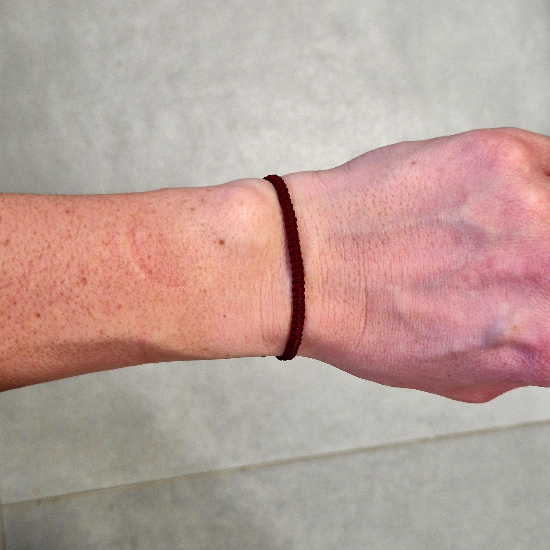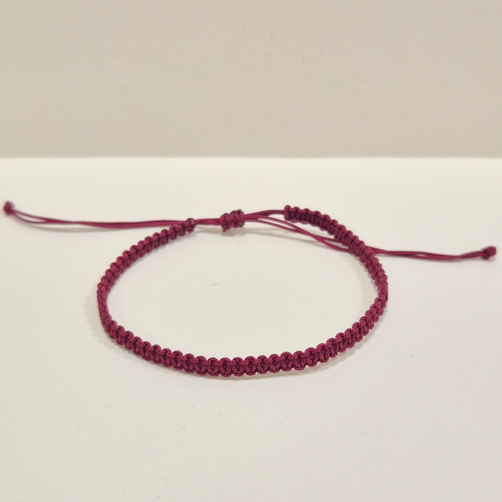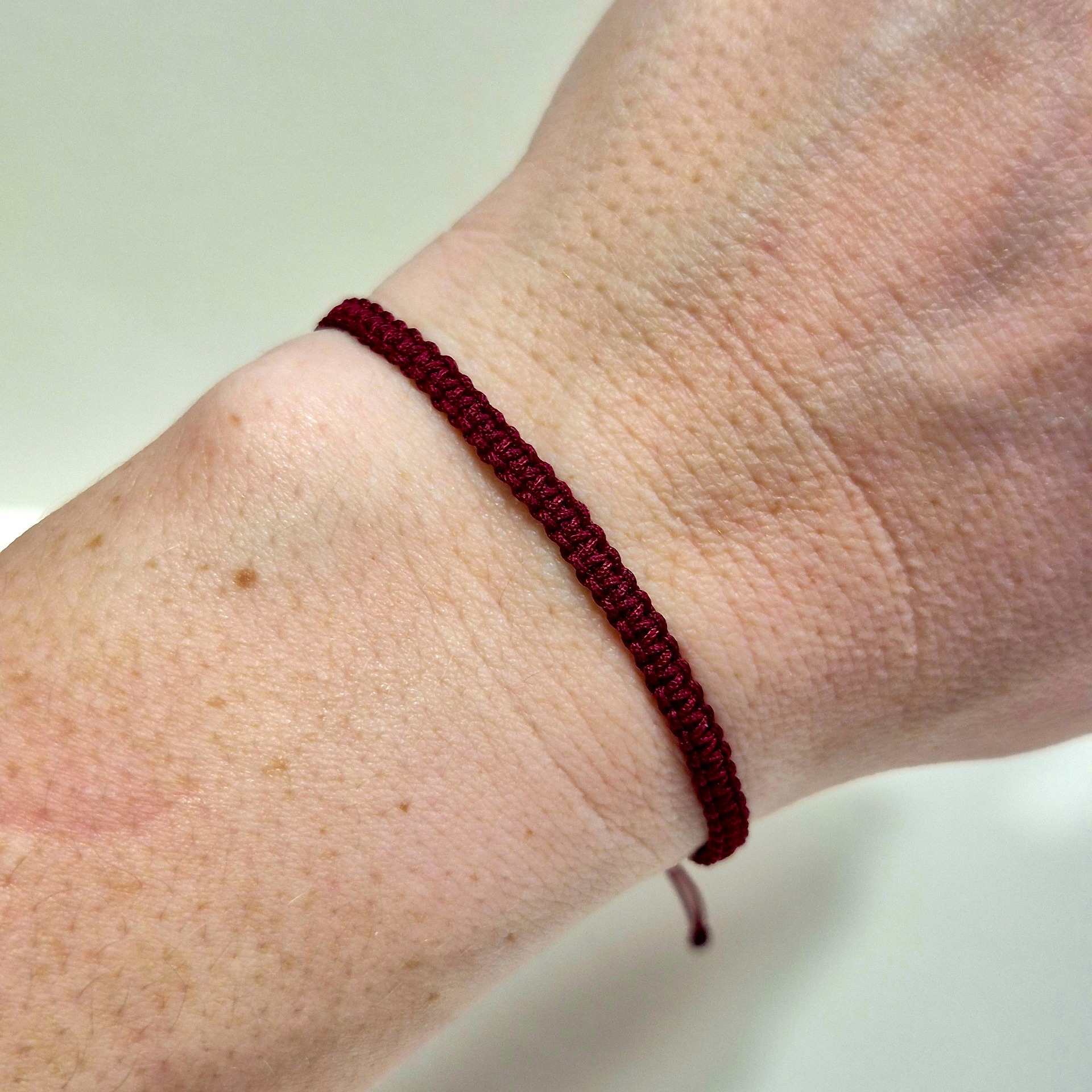 Polyesterová šňůrka je pevná, odolná a příjemná na nošení. Díky nastavitelné velikosti se náramek snadno přizpůsobí zápěstí a je vhodný pro ženy i muže.