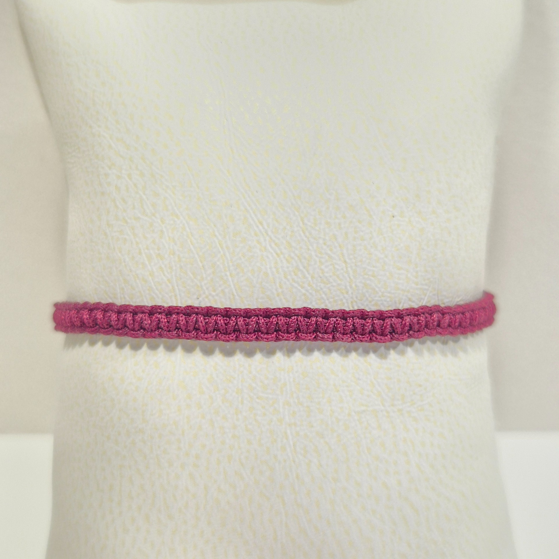 Pletený unisex náramek z polyesterové šňůrky je jednoduchým doplňkem pro každodenní nošení. Minimalistický design vyniká ručním zpracováním a jemnou strukturou pletení, která náramku dodává lehkost a nadčasový vzhled.
