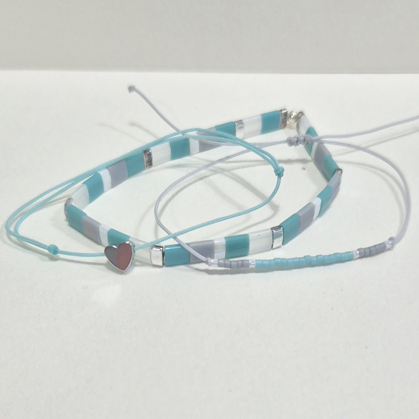 Druhý náramek tvoří šňůrka s korálky Miyuki ve stejných barvách, která dodává setu jemnou strukturu a eleganci.