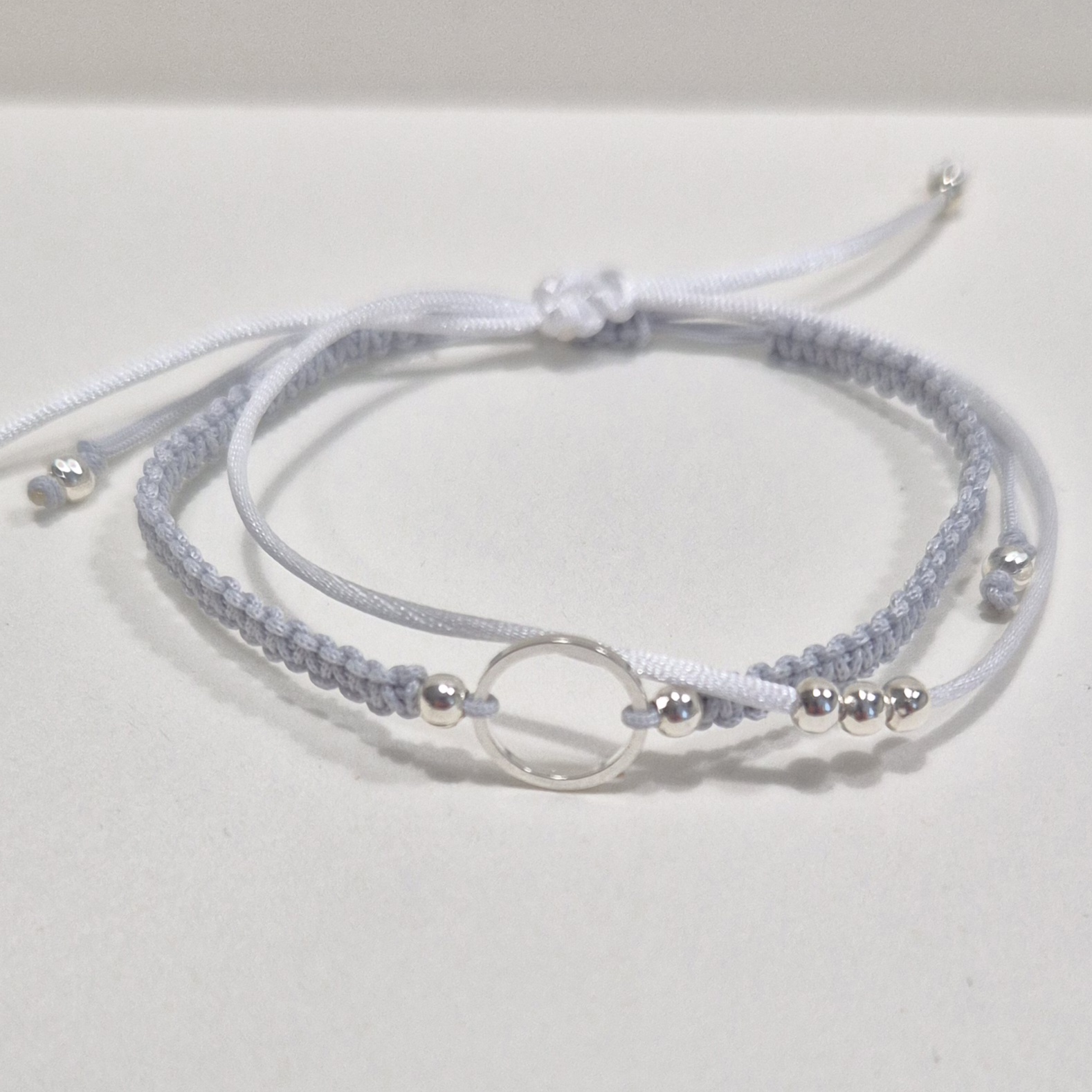 Minimalistický set dvou náramků, který vyniká svou čistotou a jemnou elegancí. Kombinace bílé, šedé a stříbrných detailů působí univerzálně a dokonale se hodí ke každému outfitu.