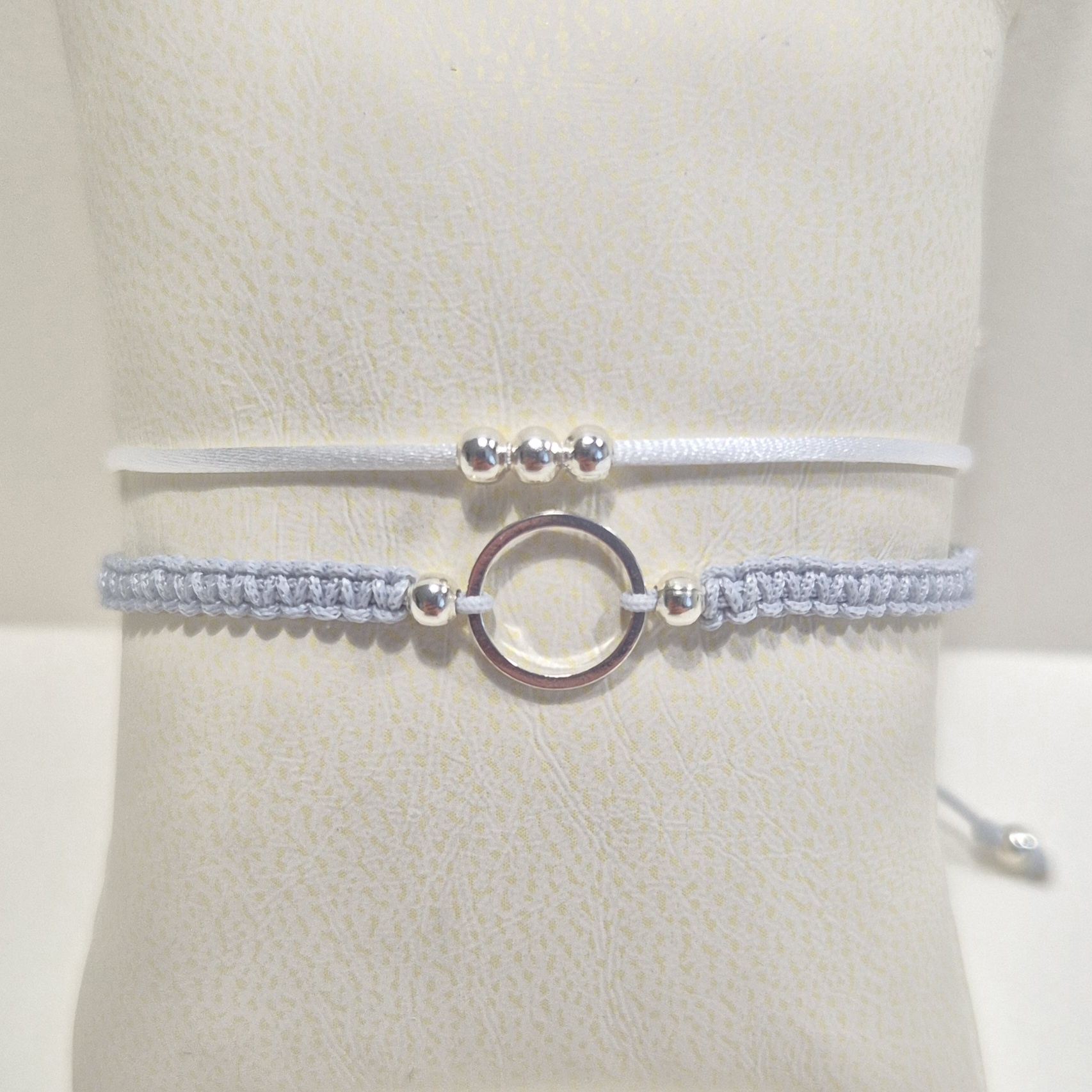 Set dvou náramků – jednoduchost a elegance v bílo-šedé.