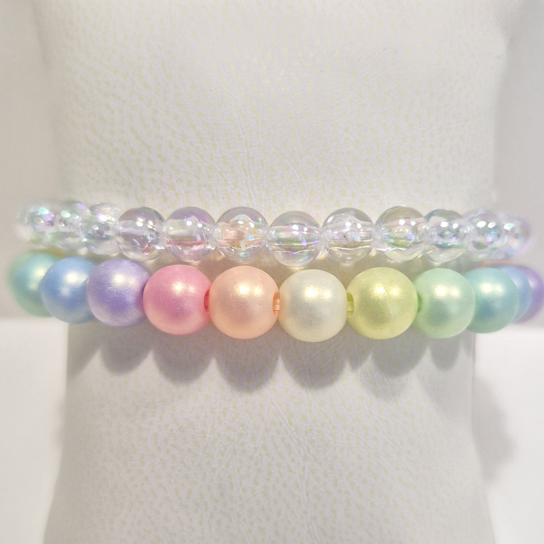 Kombinace akrylových korálků vytváří hravý, veselý a zároveň jemný doplněk, který rozzáří každý den.