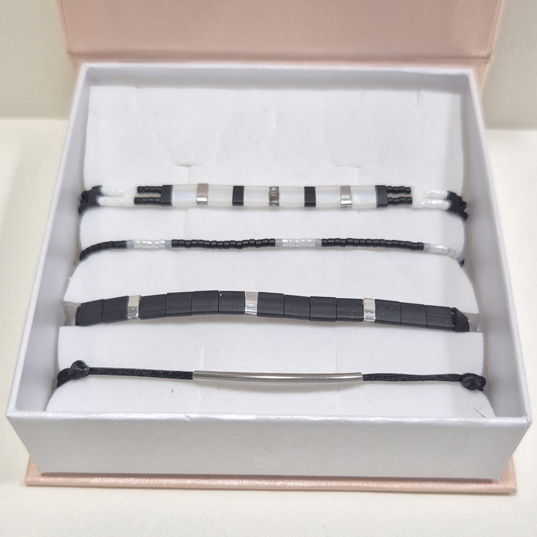 Stylový set čtyř náramků, které spolu dokonale ladí a vytvářejí moderní a elegantní celek.