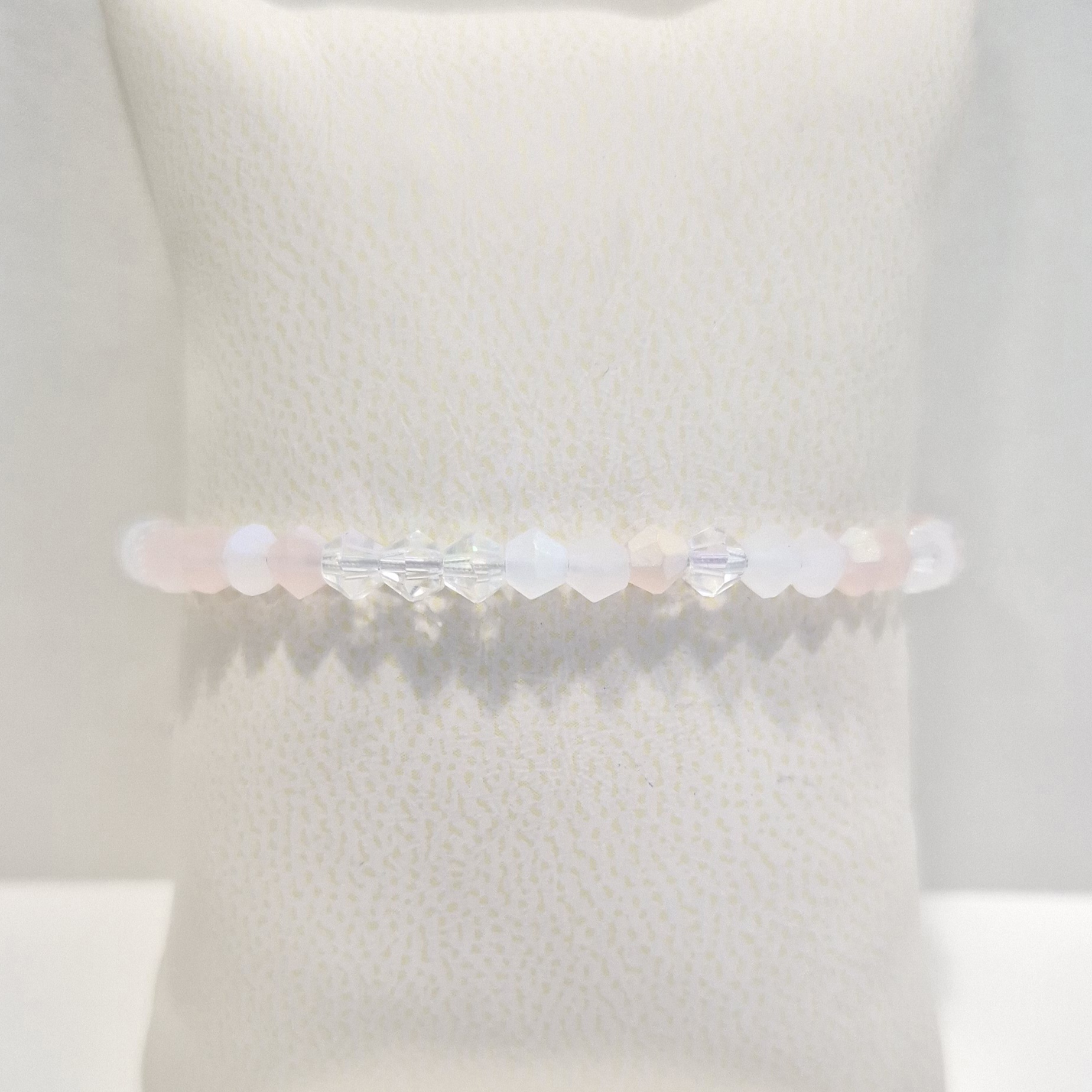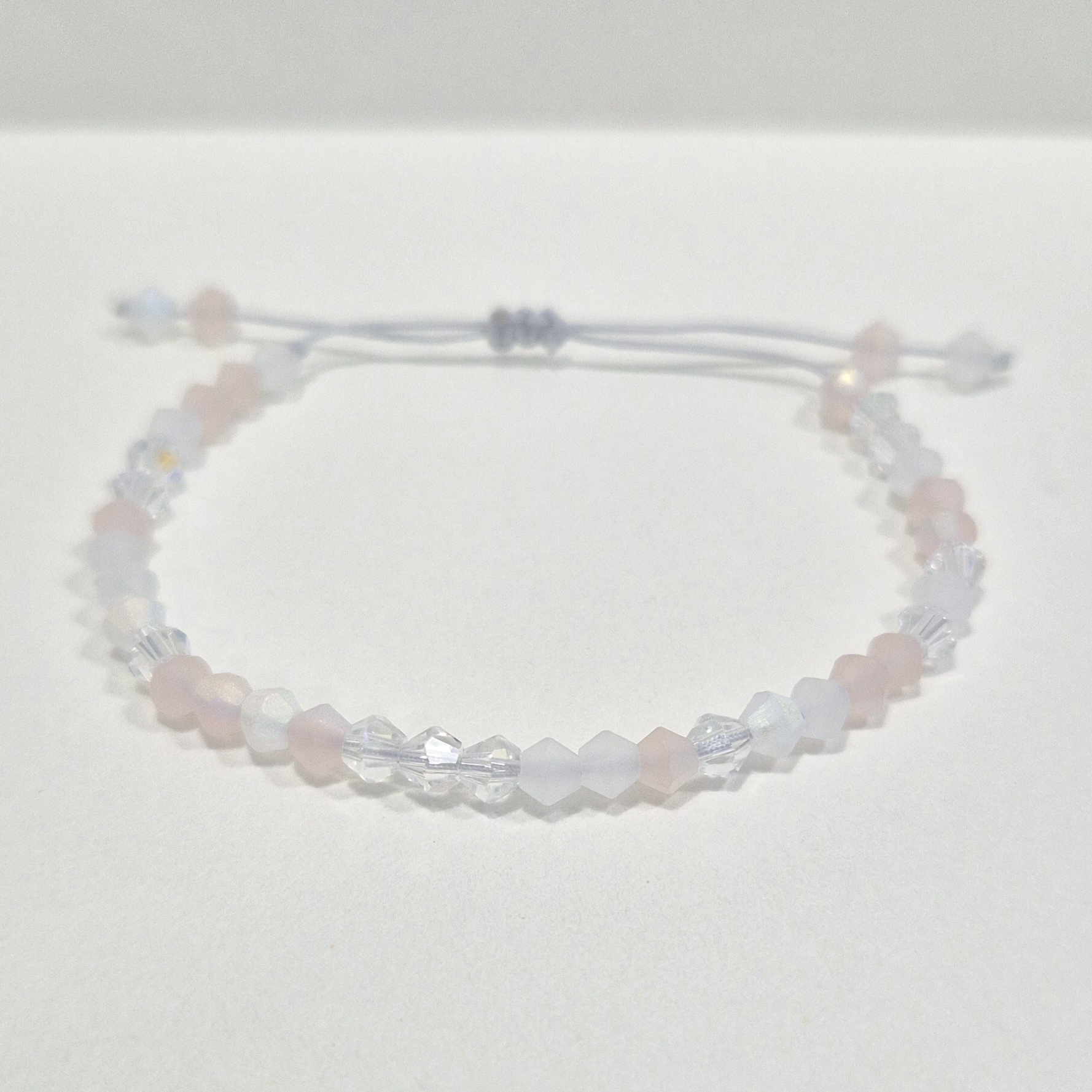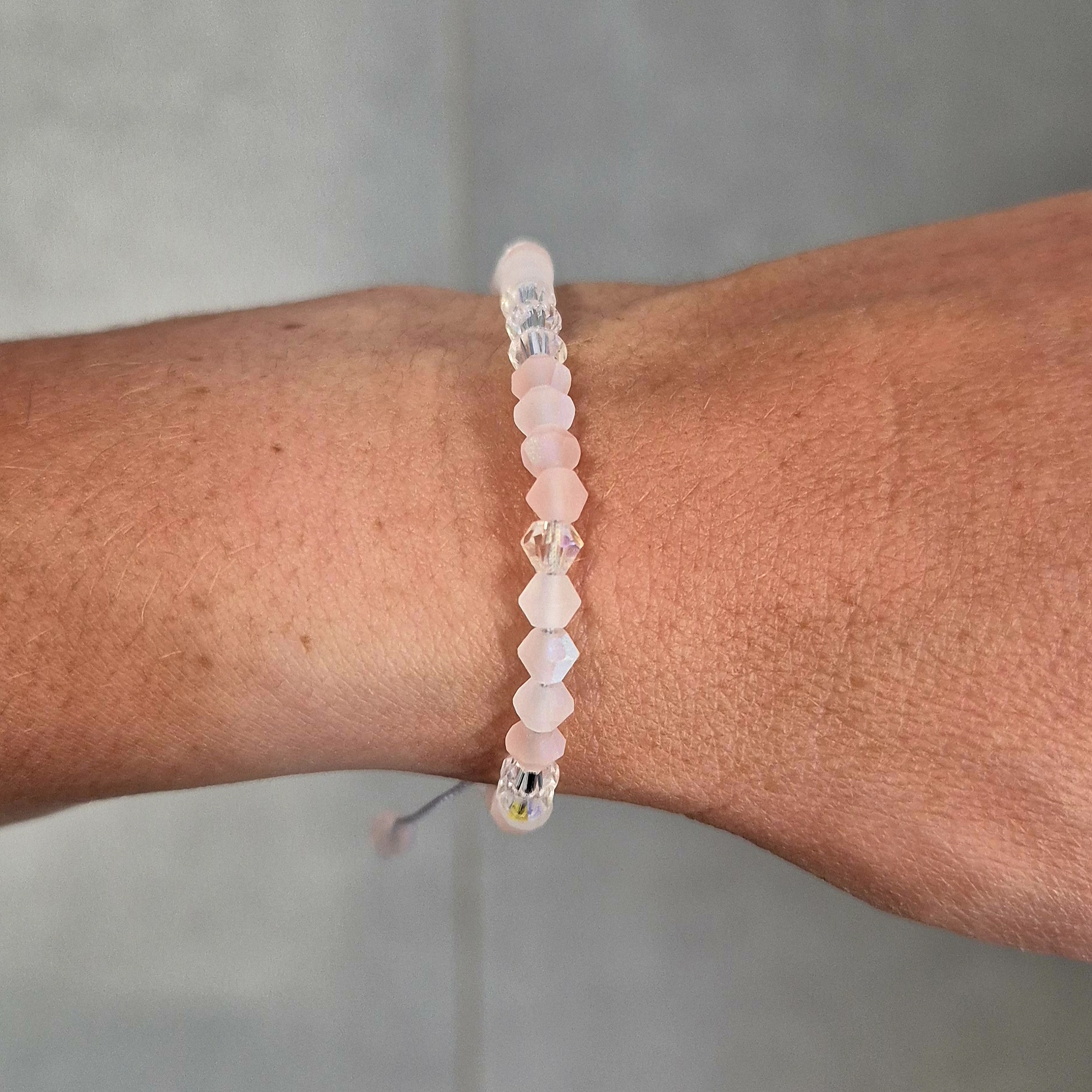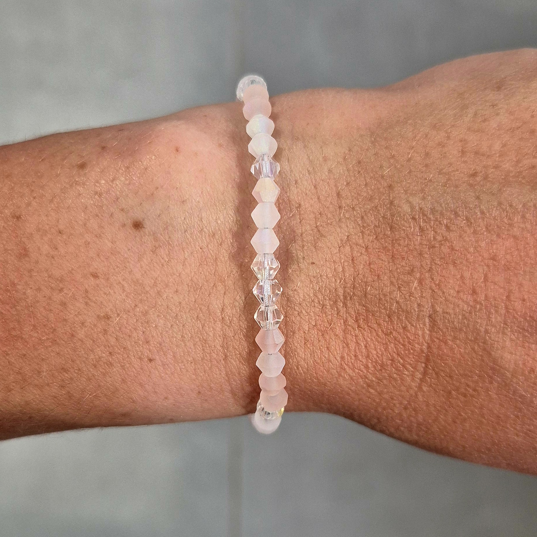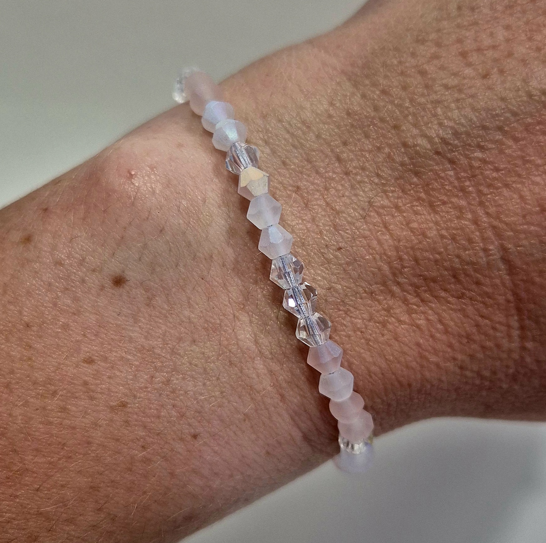 Skleněné broušené korálky (imitace Swarovski) jsou navlečené na pevné šňůrce.