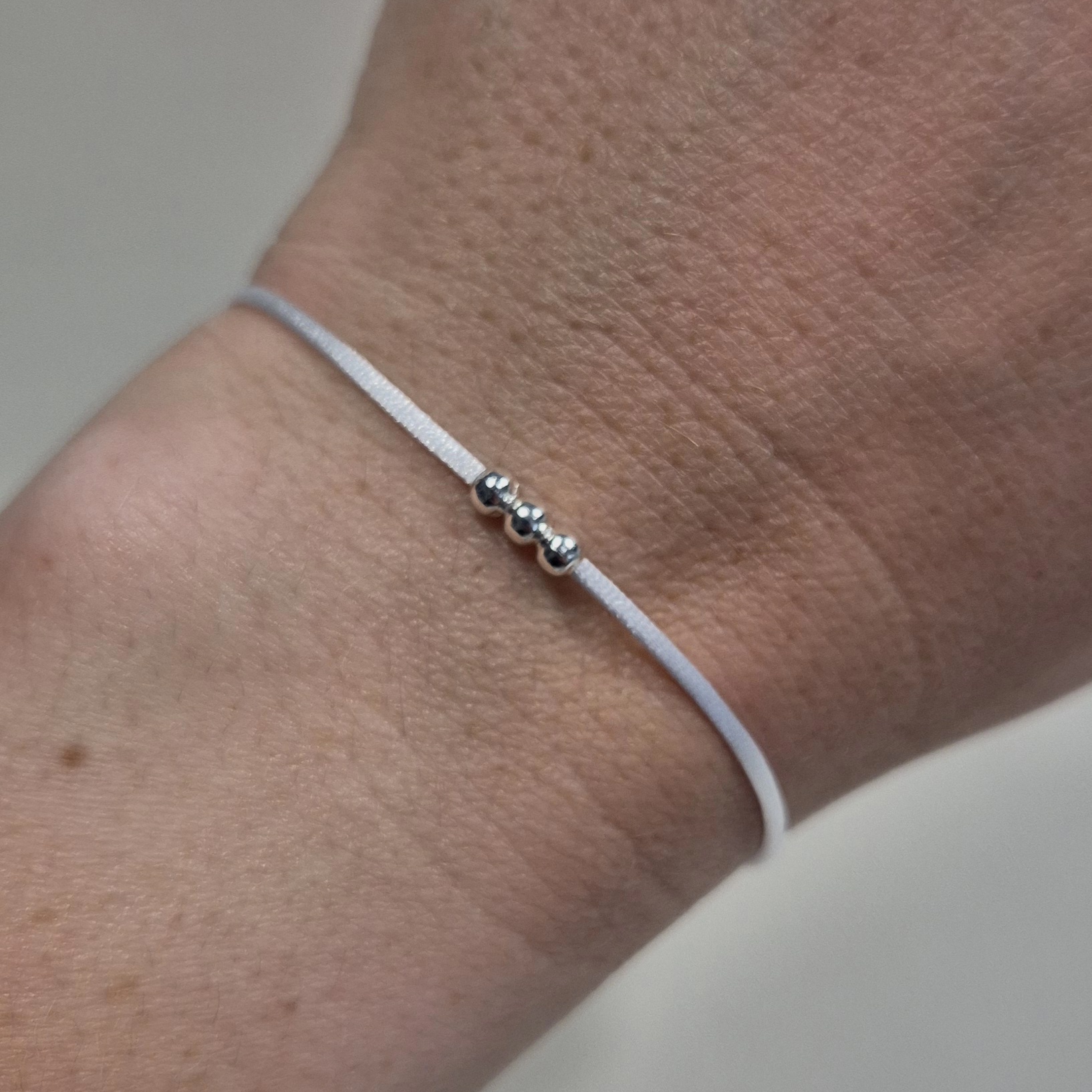 ✨ Bílý šňůrkový náramek se stříbrnými korálky ✨