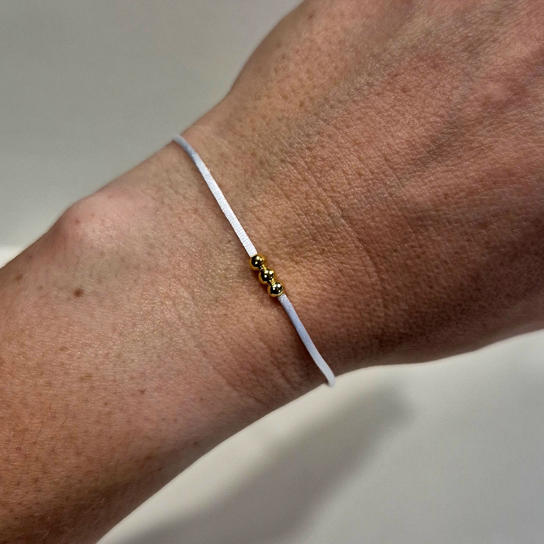 ✨ Bílý šňůrkový náramek se zlatými korálky ✨