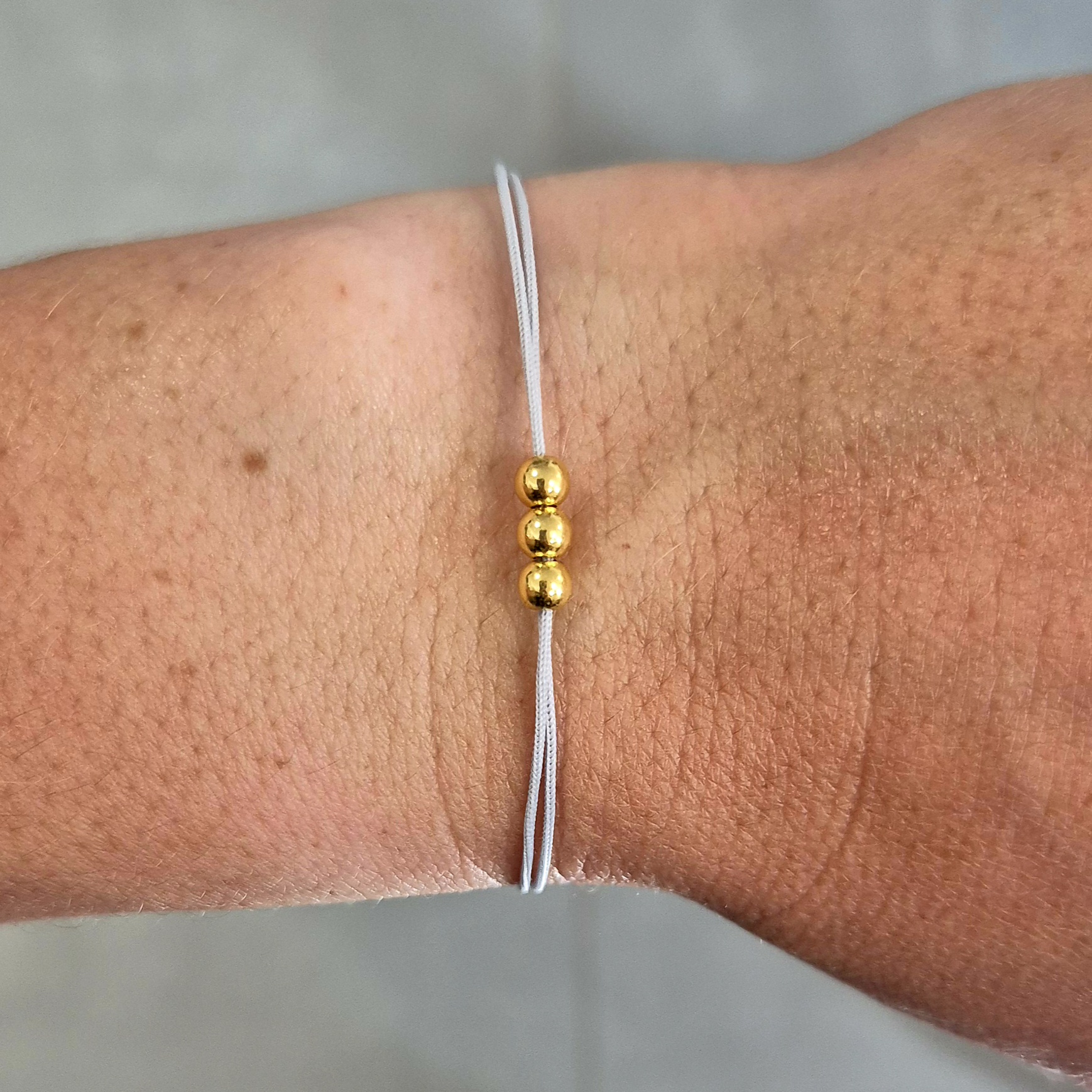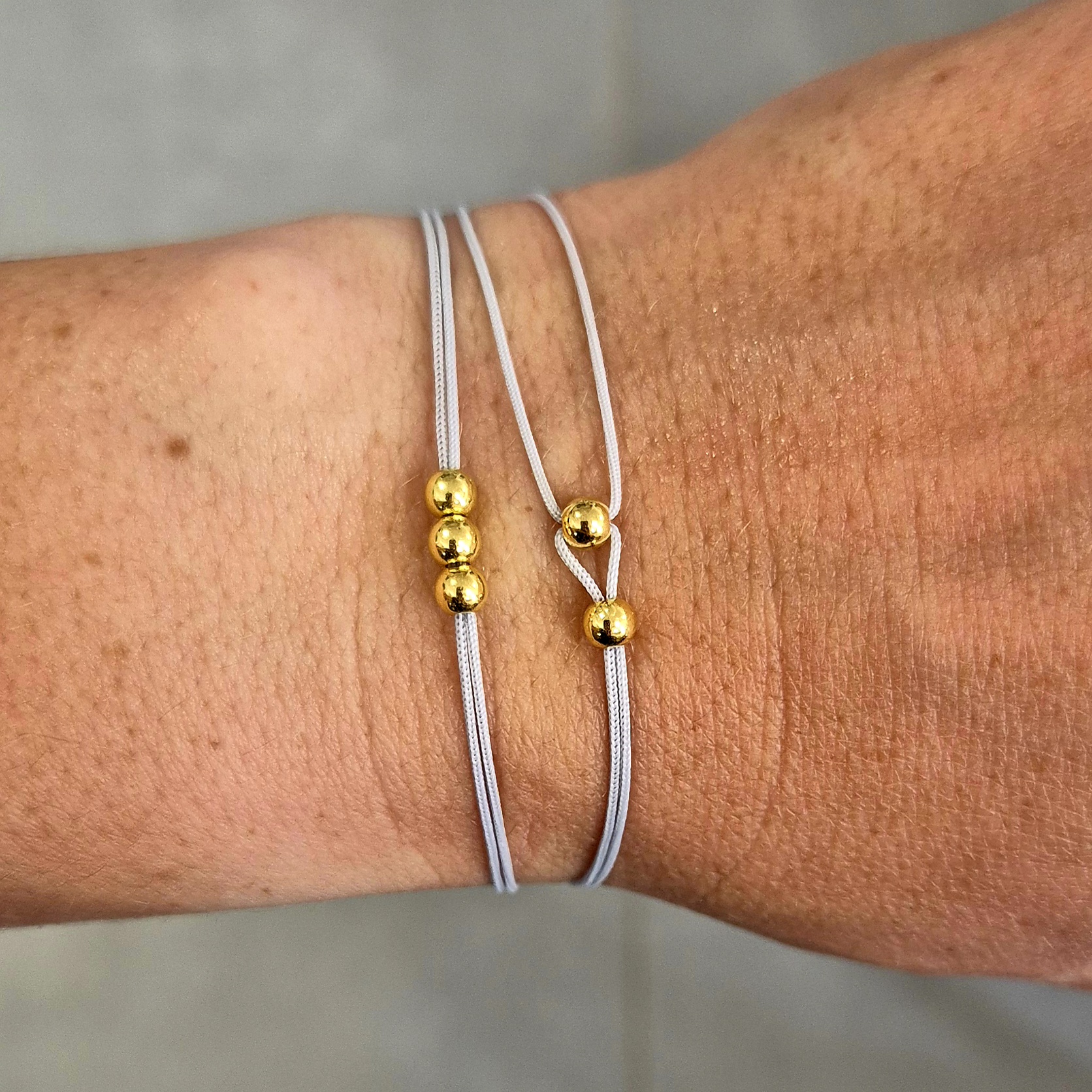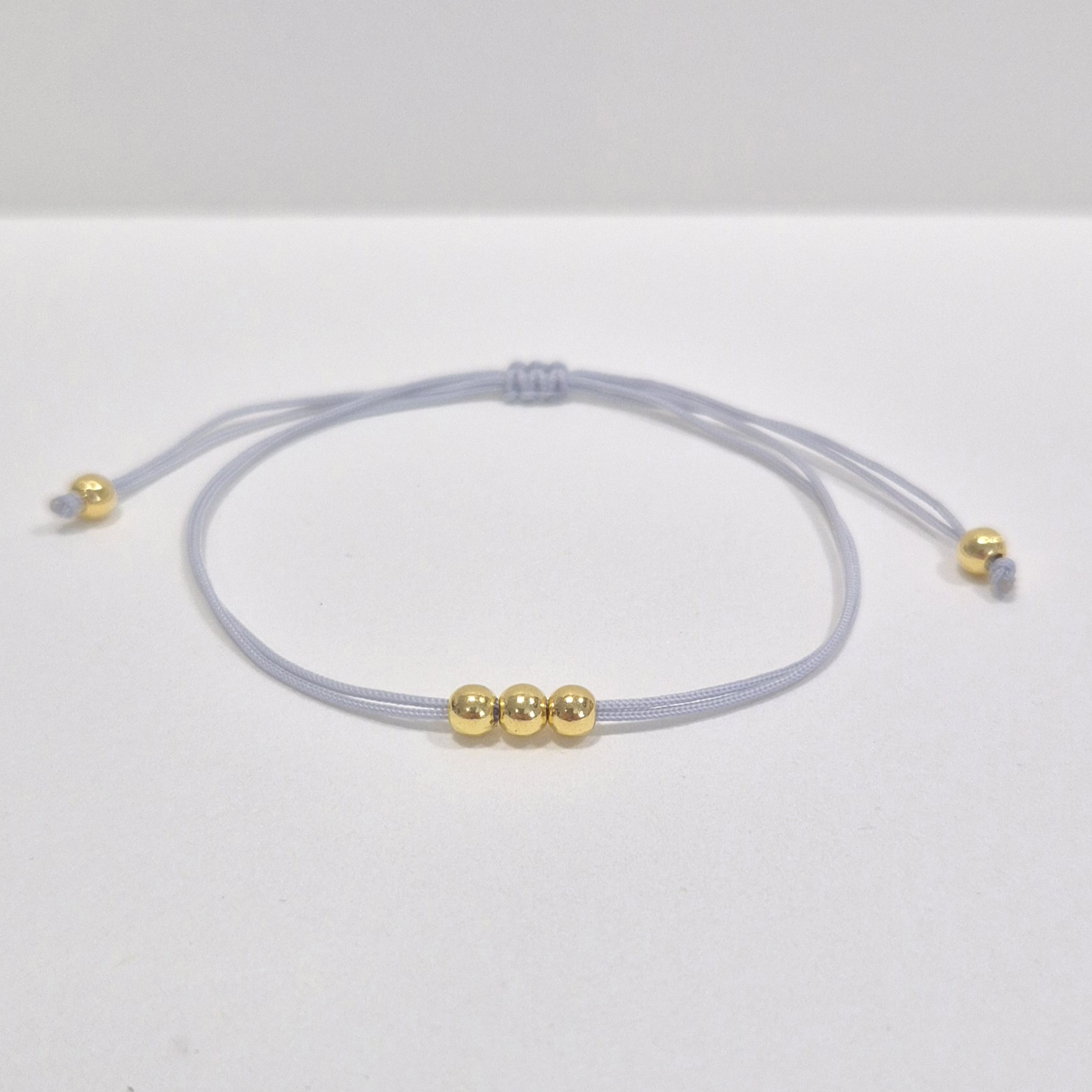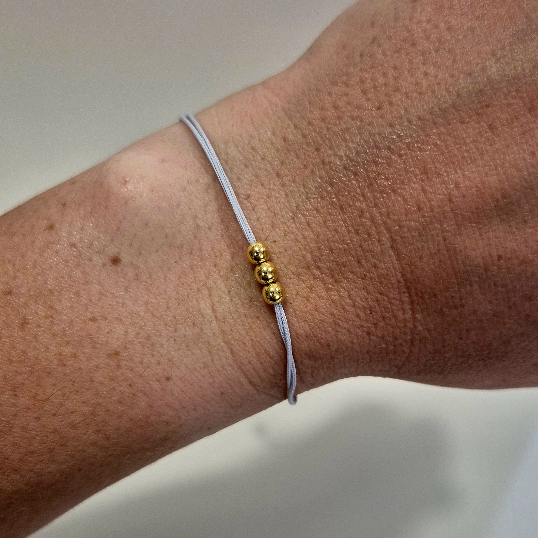 ✨ Šedý šňůrkový náramek se zlatými korálky ✨