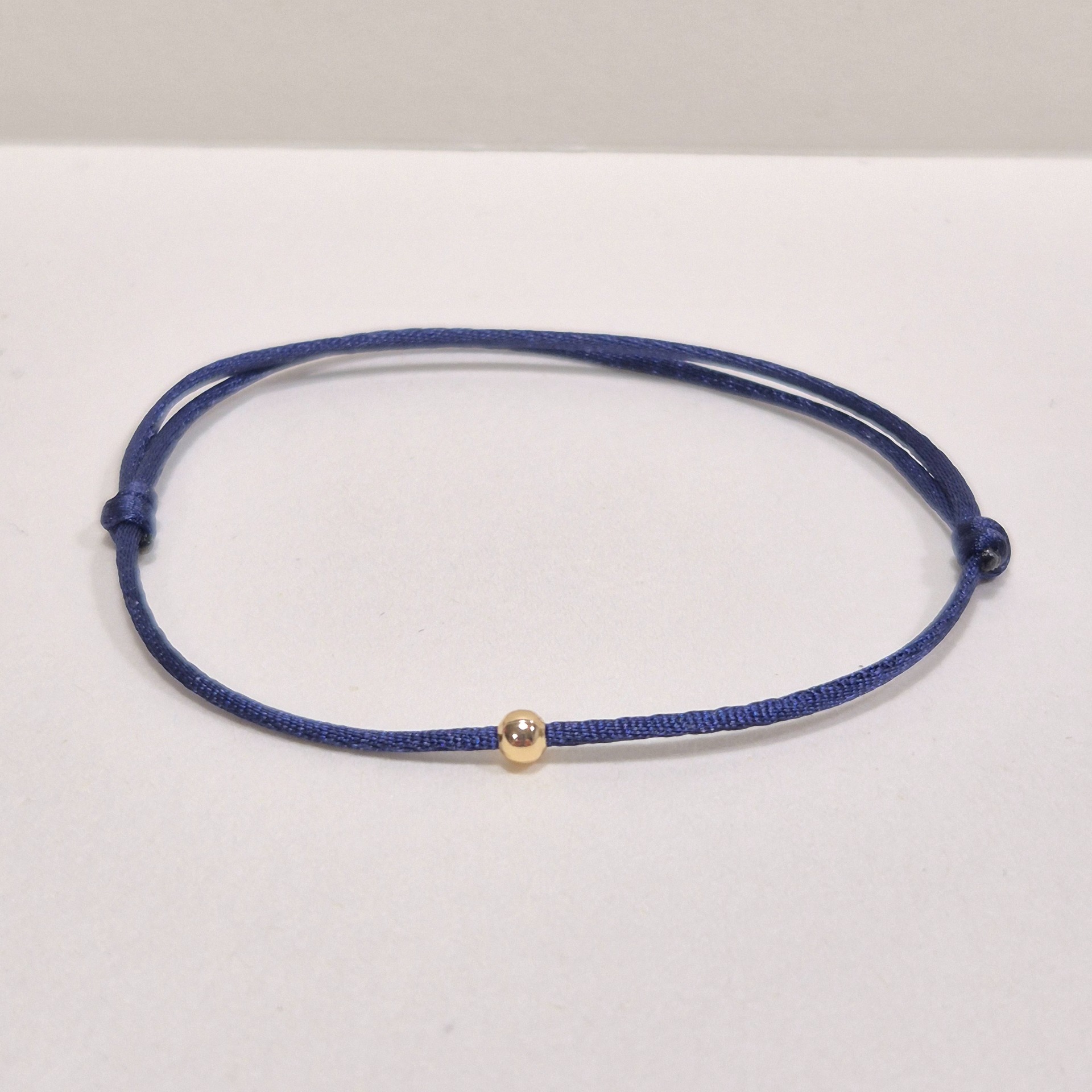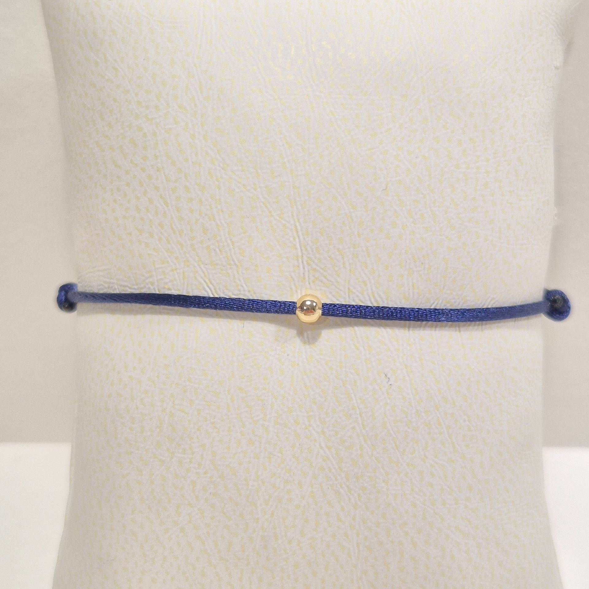 Jemný a elegantní náramek ze saténové šňůrky, doplněný decentním korálkem z mosazi.