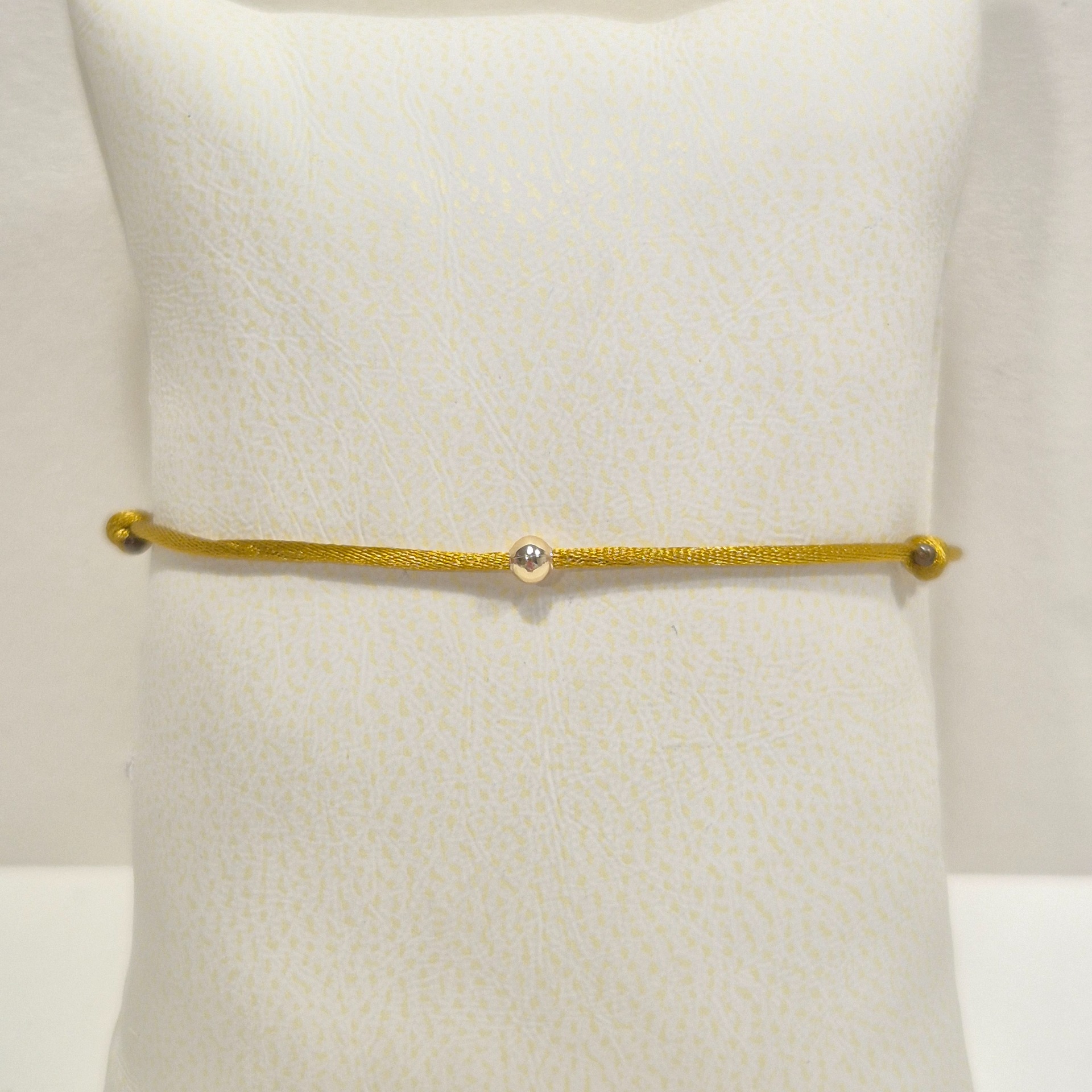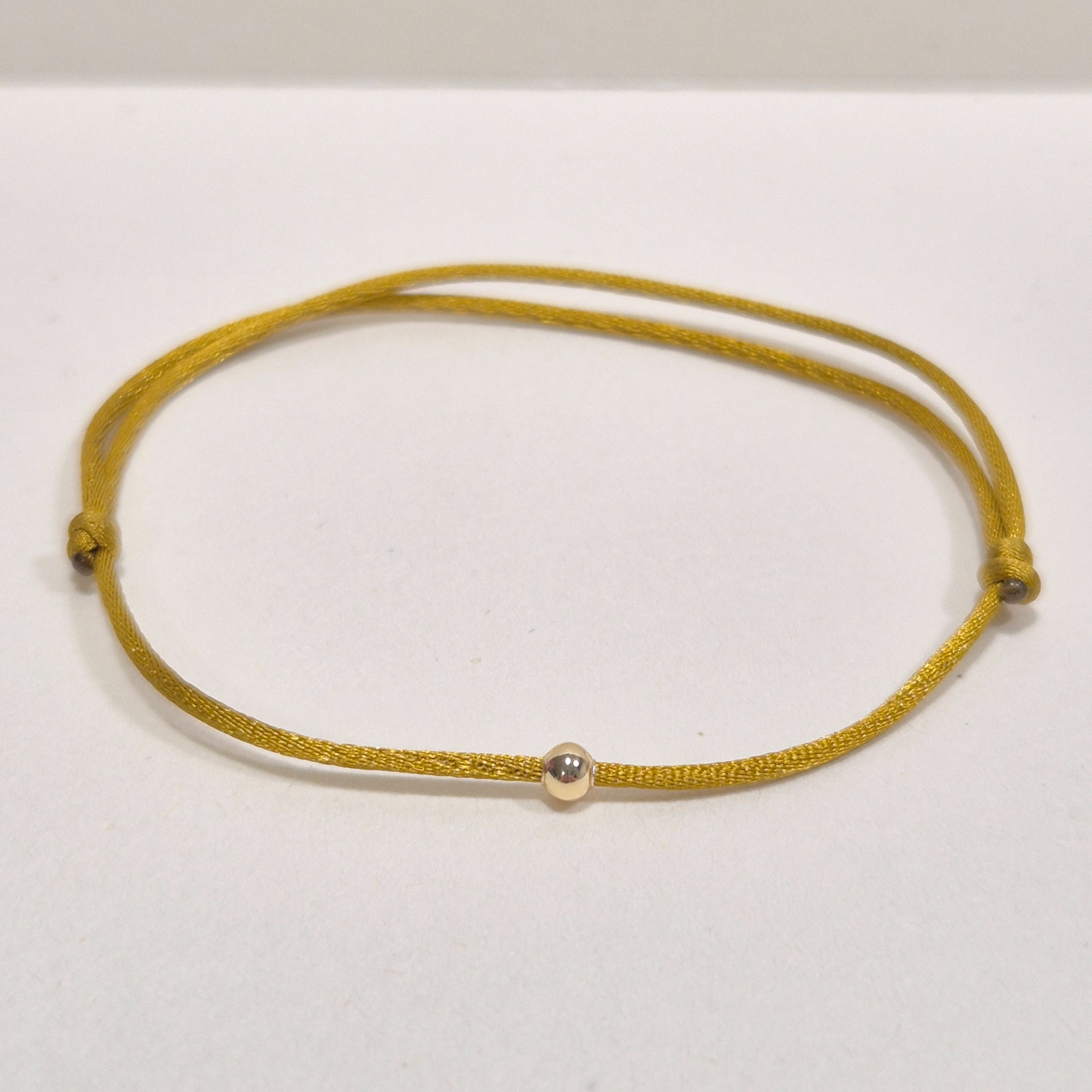 Jemný a elegantní náramek ze saténové šňůrky, doplněný decentním korálkem z mosazi.