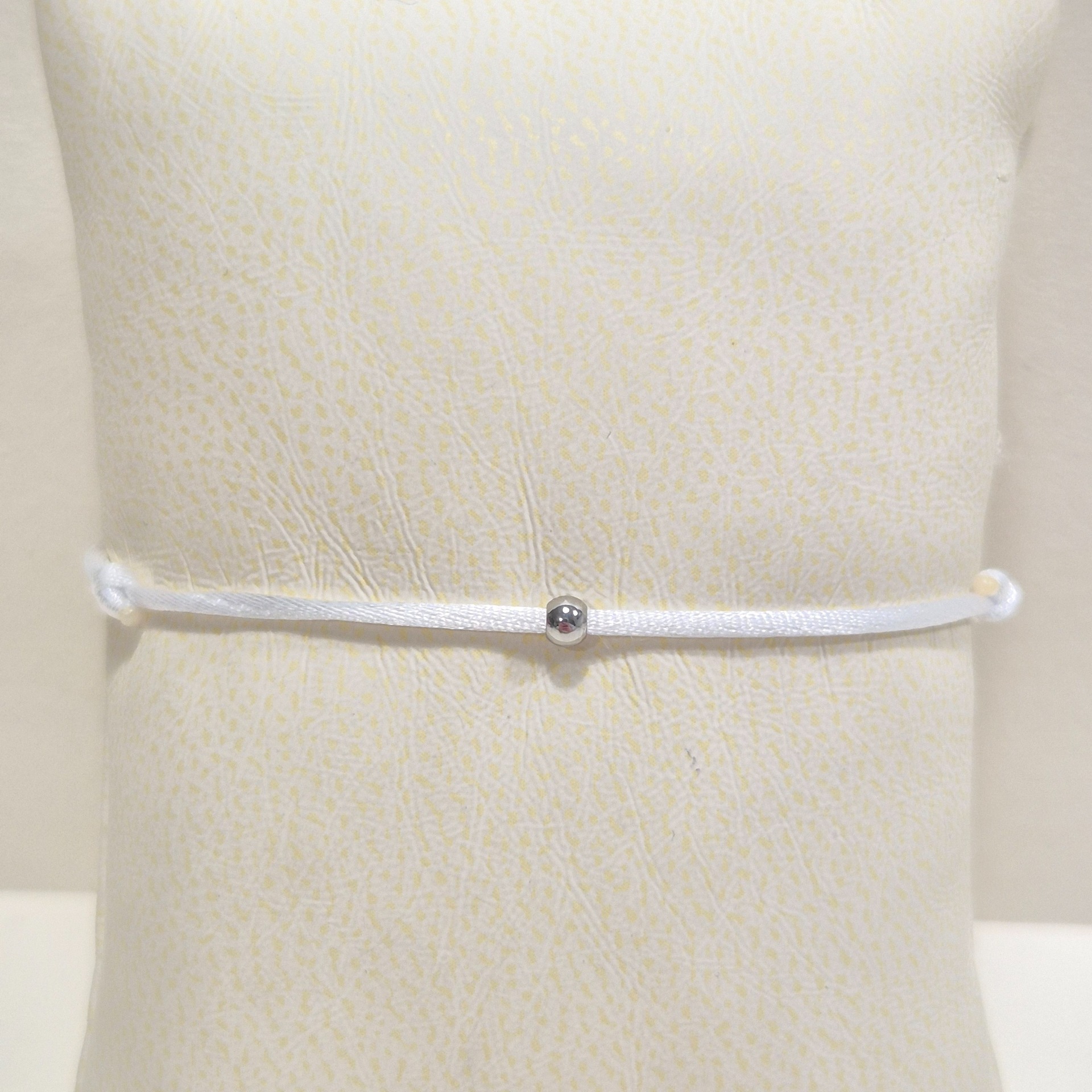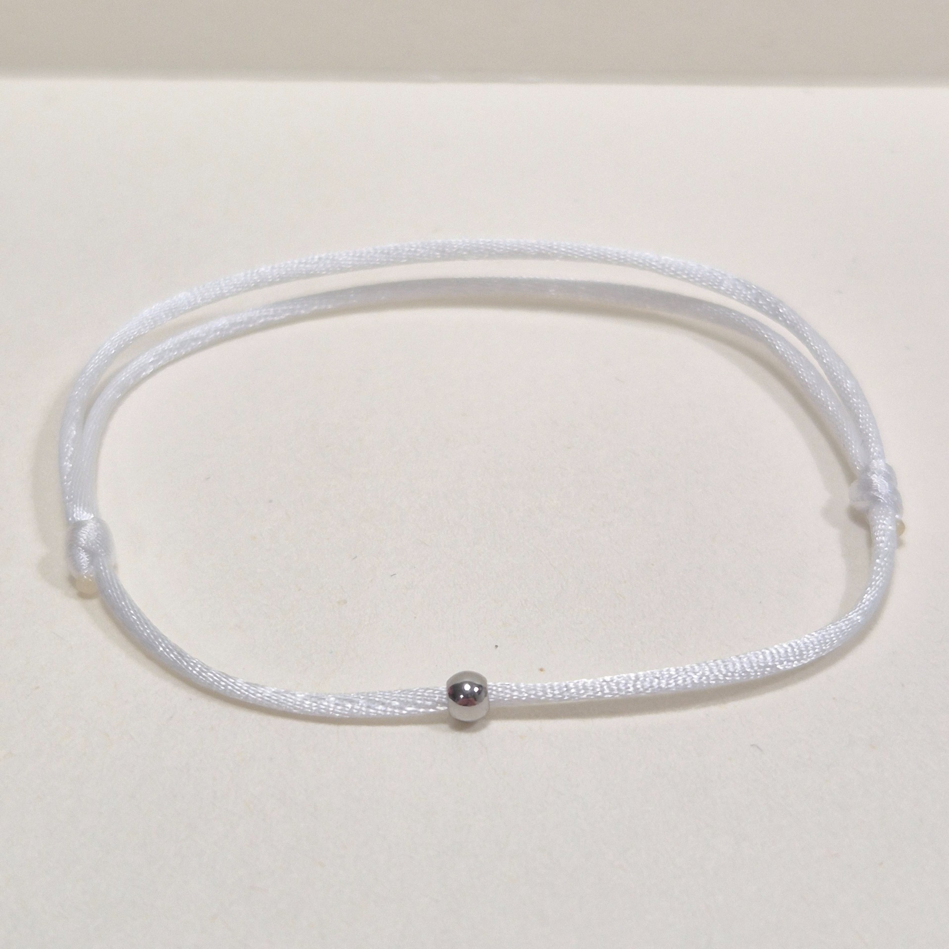 Jemný a elegantní náramek ze saténové šňůrky, doplněný decentním korálkem z nerezové oceli.