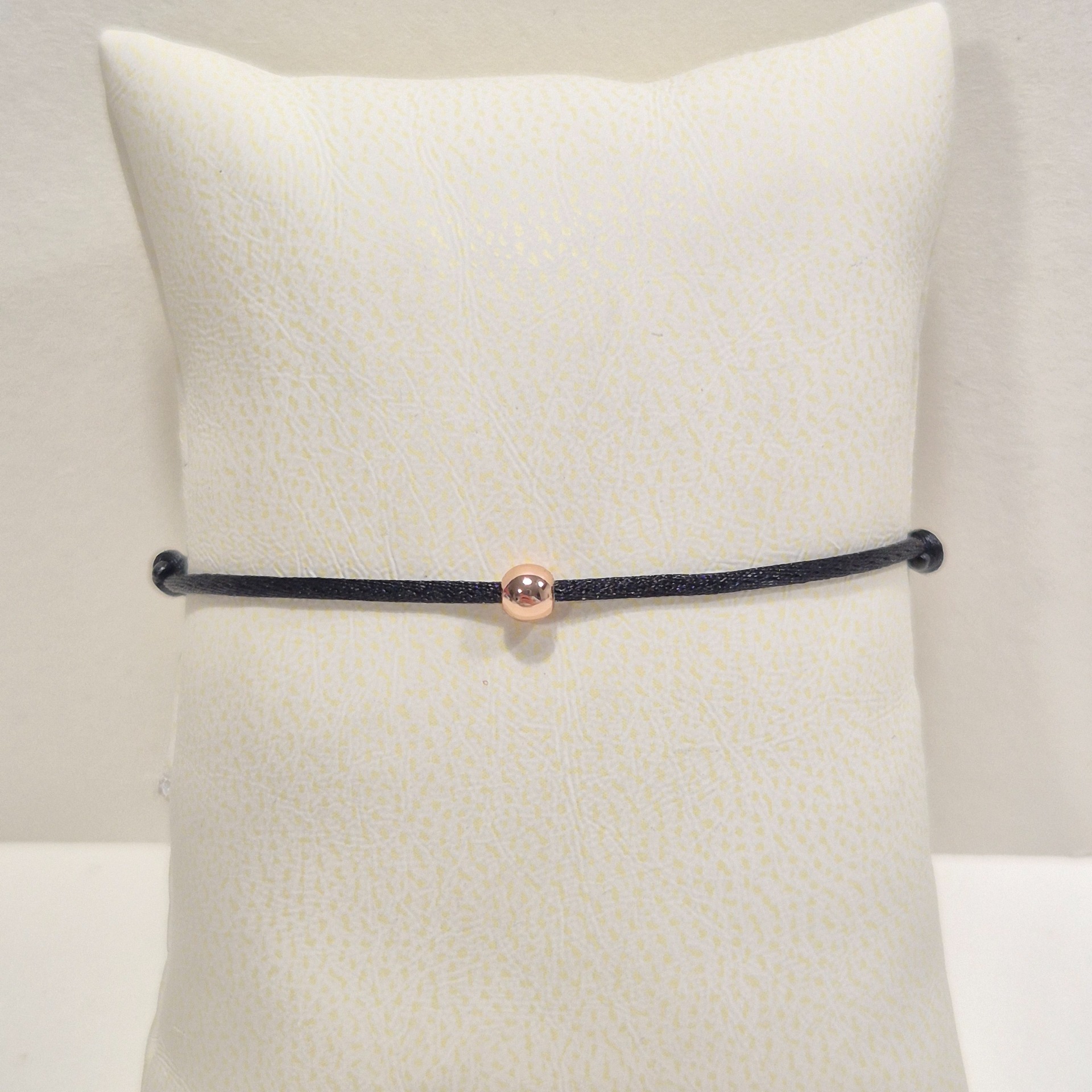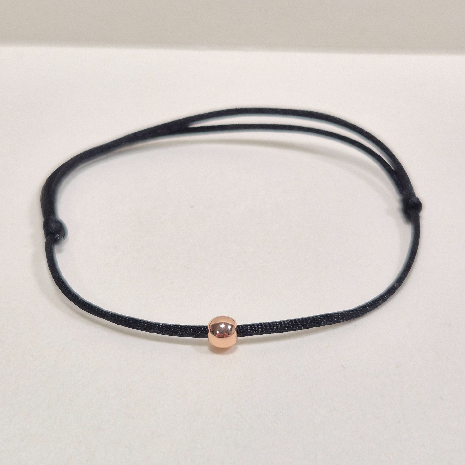 Jemný a elegantní náramek ze saténové šňůrky, doplněný decentním korálkem z mosazi.