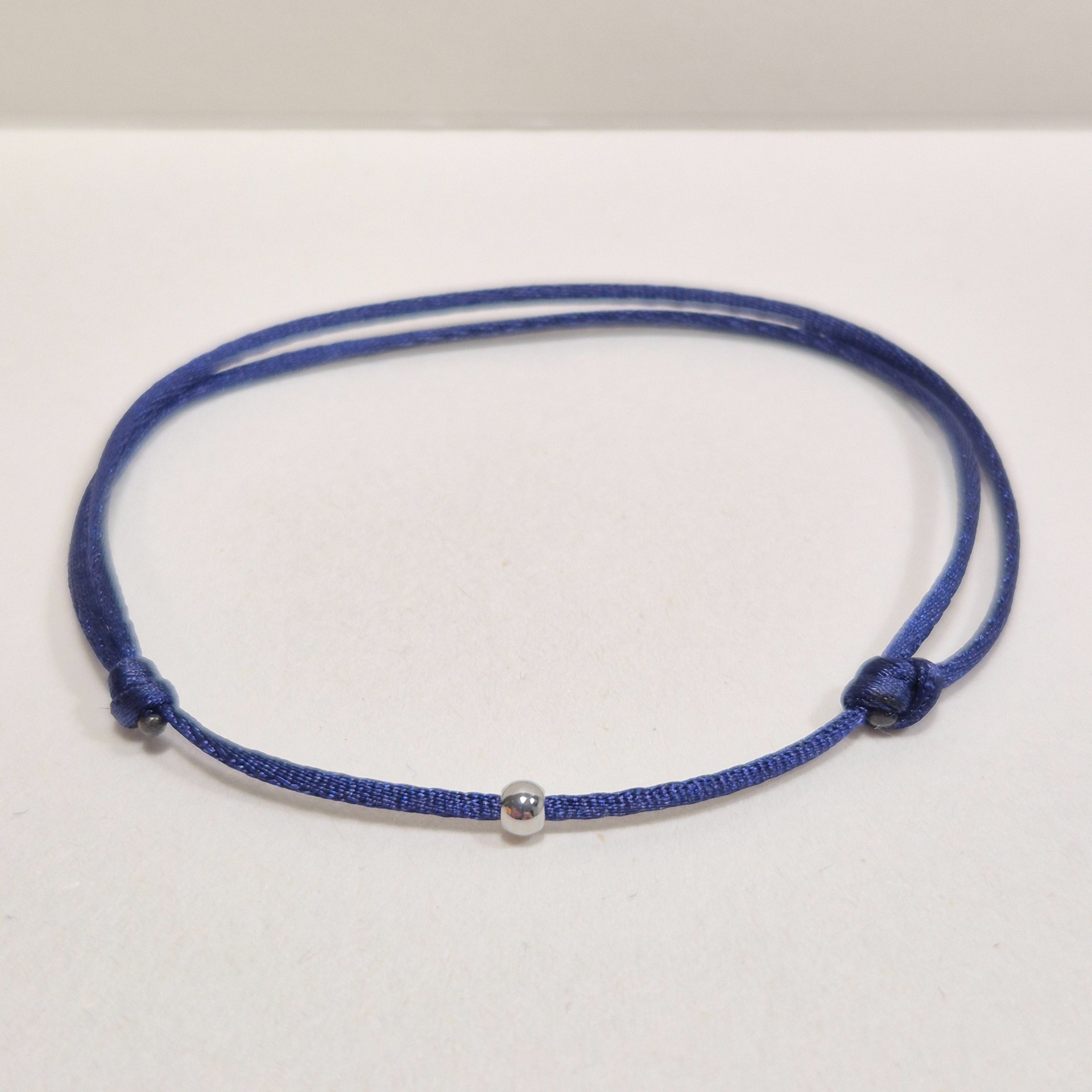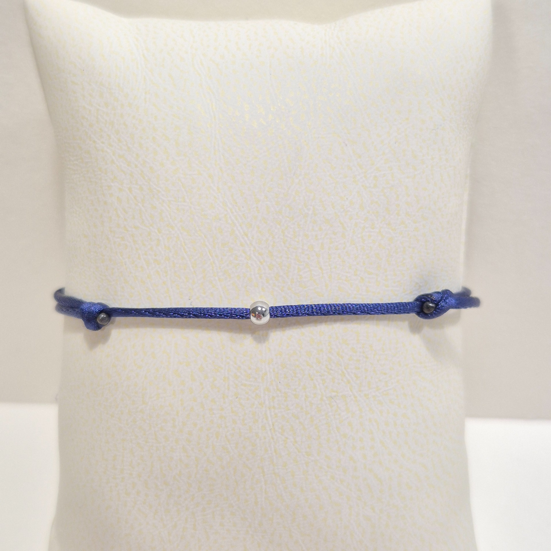 Jemný a elegantní náramek ze saténové šňůrky, doplněný decentním korálkem z nerezové oceli.