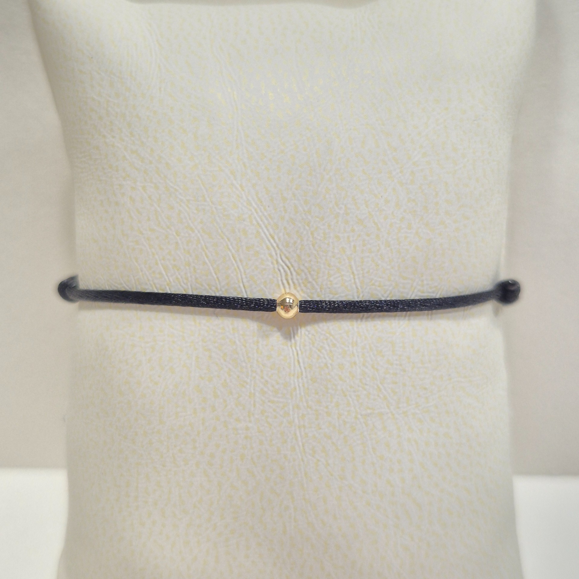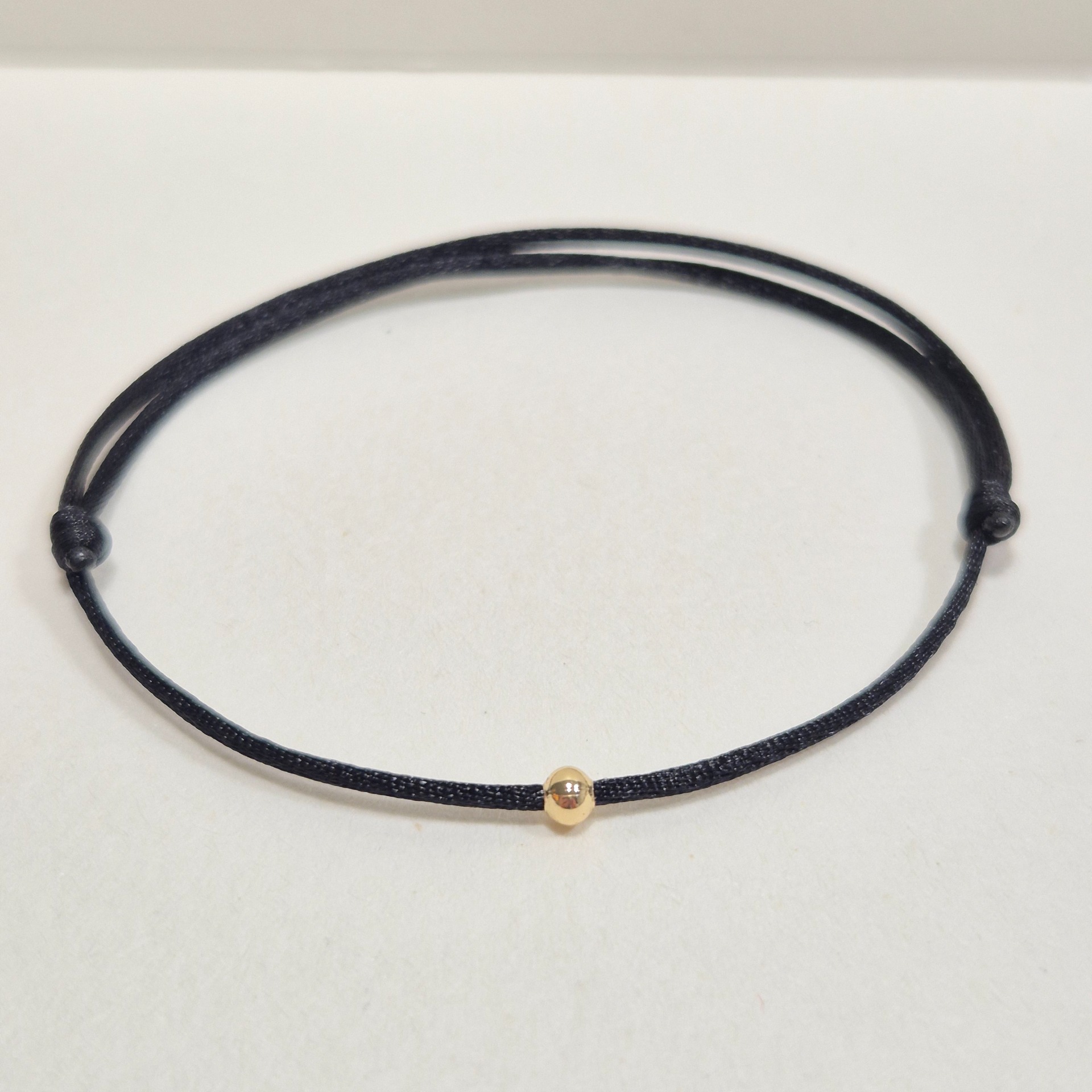 Jemný a elegantní náramek ze saténové šňůrky, doplněný decentním korálkem z mosazi.