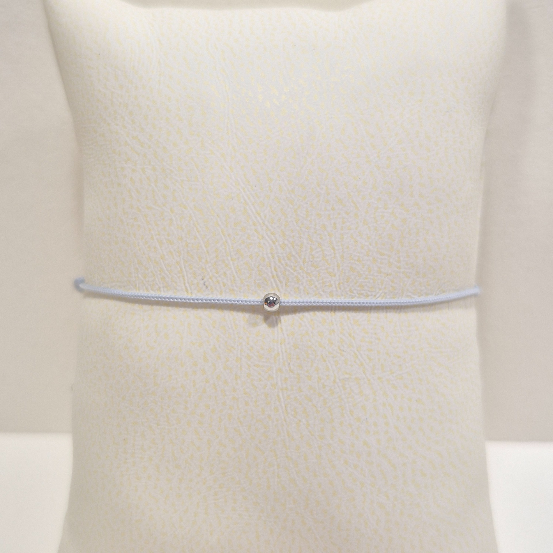 Jemný a elegantní náramek z polyesterové šňůrky, doplněný decentním korálkem z nerezové oceli.