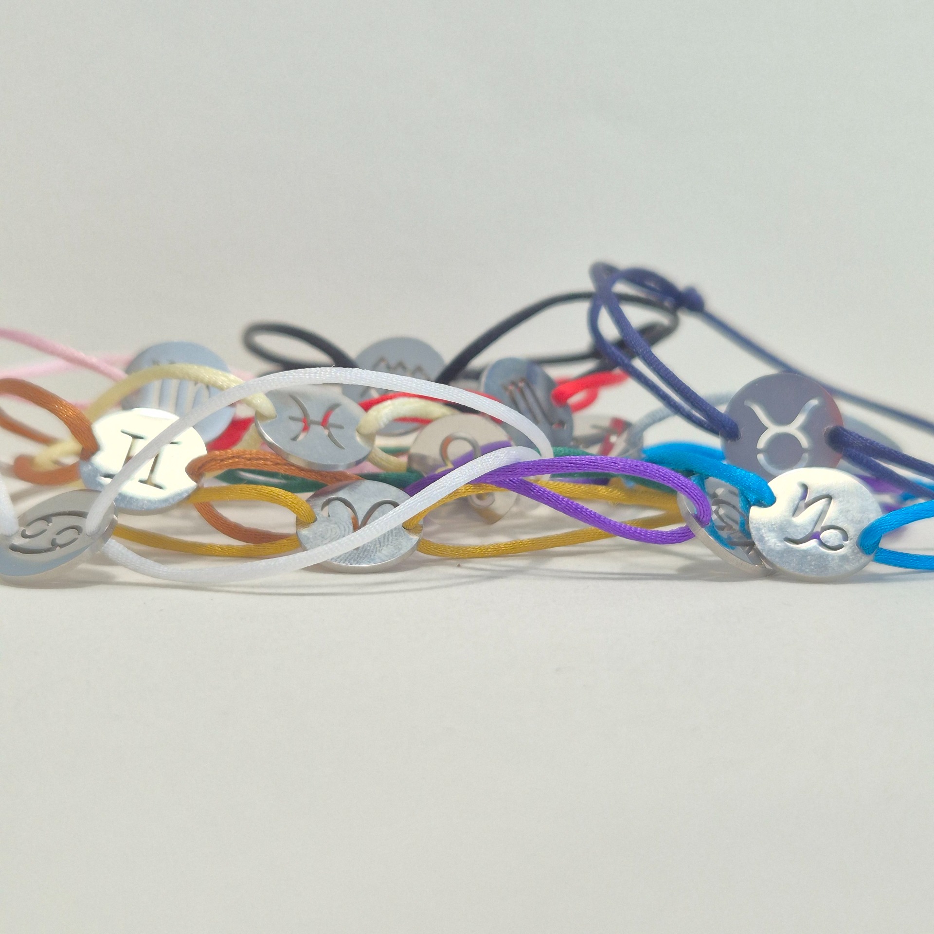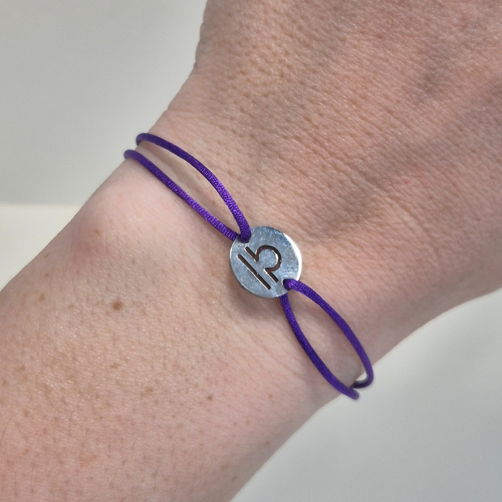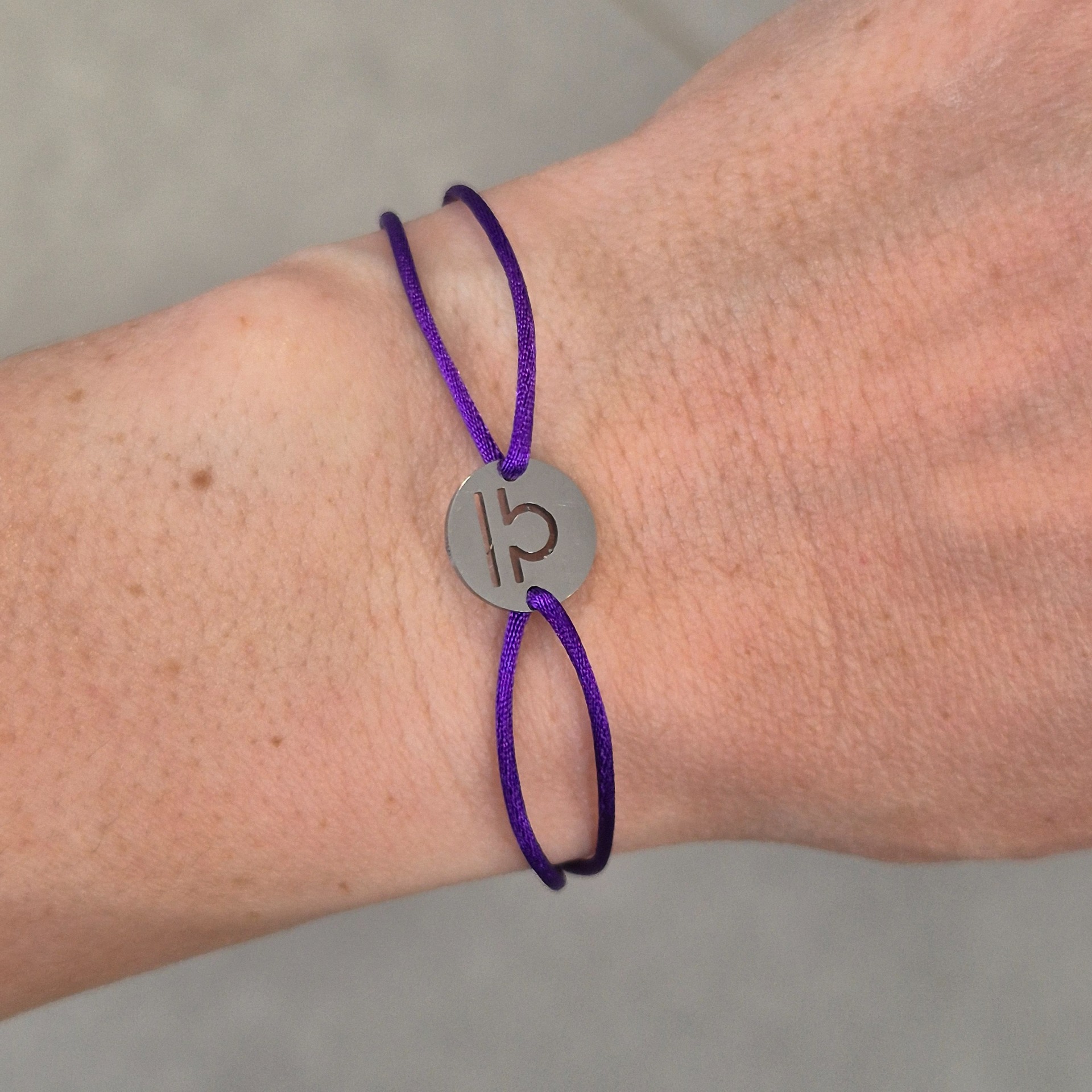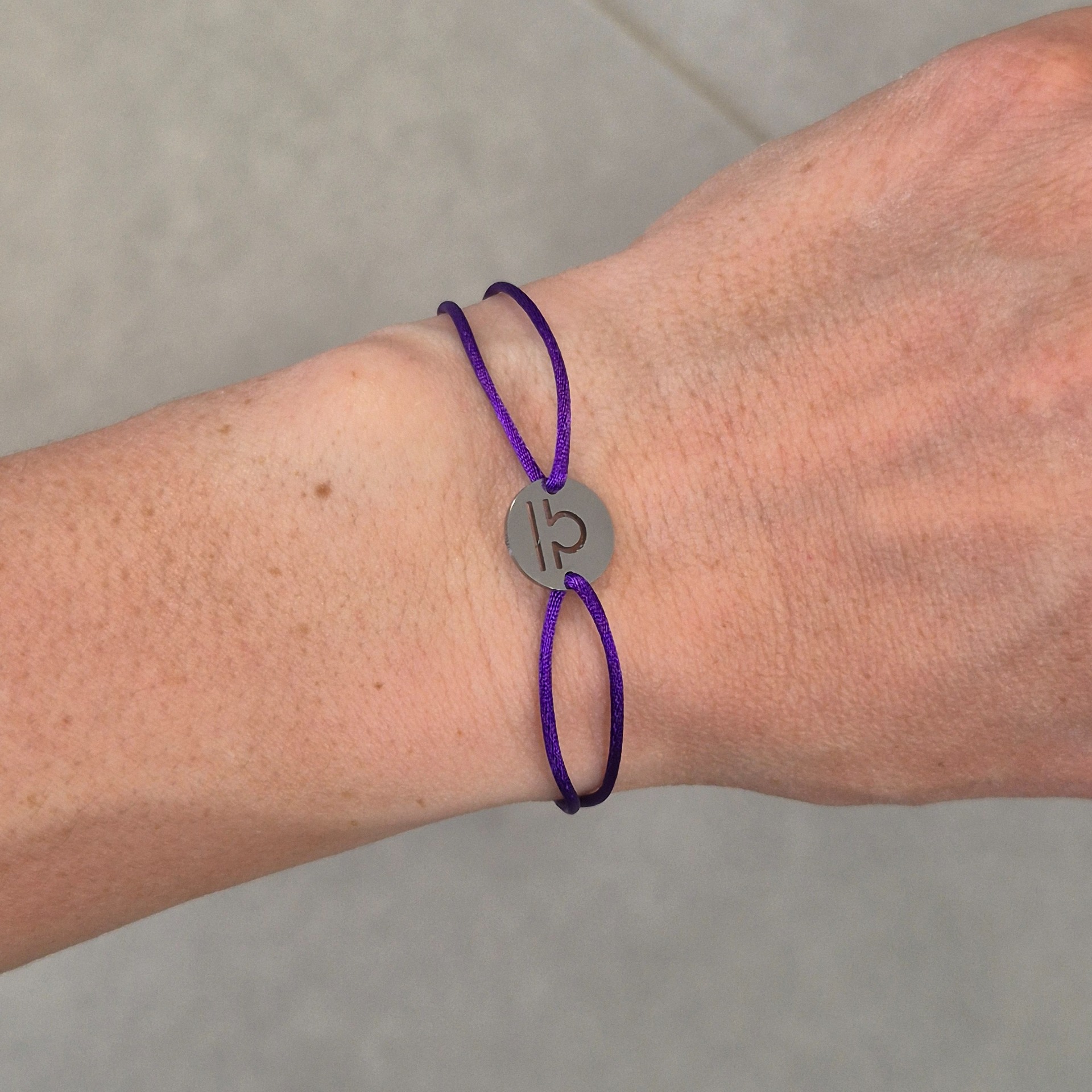 Náramek je tvořen na saténové polyesterové šňůrce, která je příjemná na nošení a díky posuvnému zapínání se přizpůsobí velikosti zápěstí.