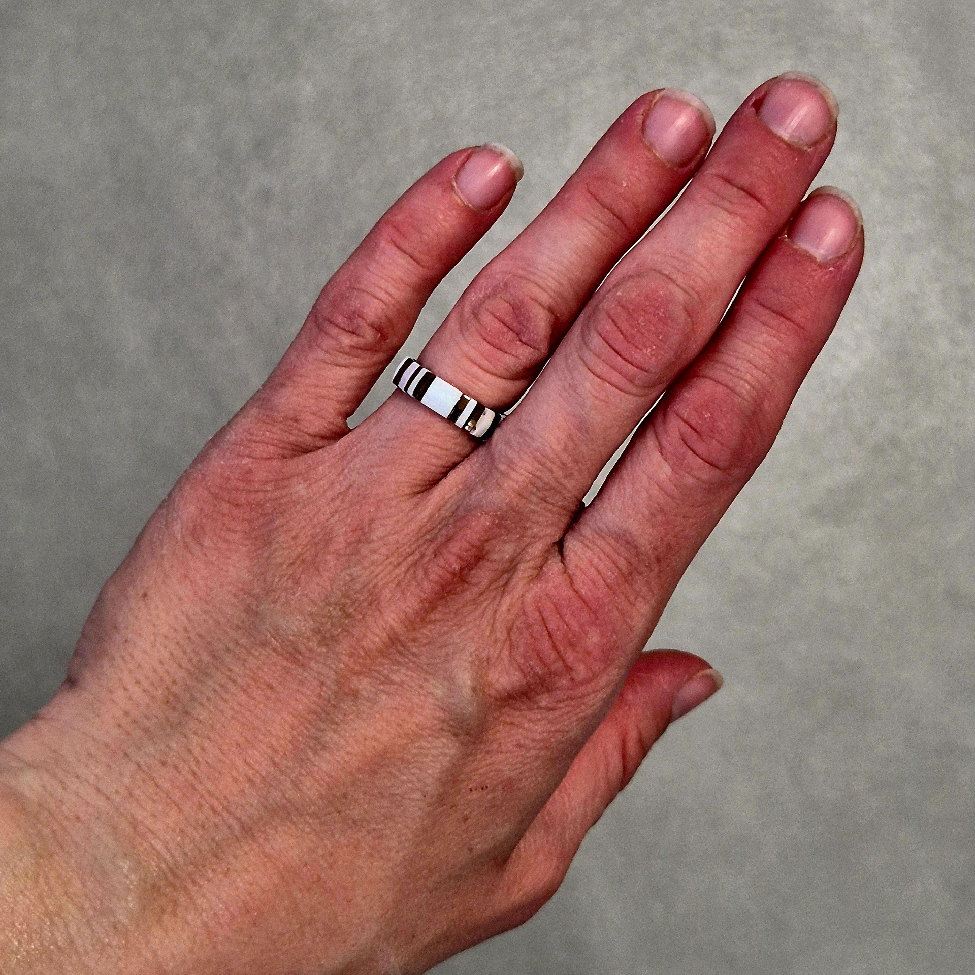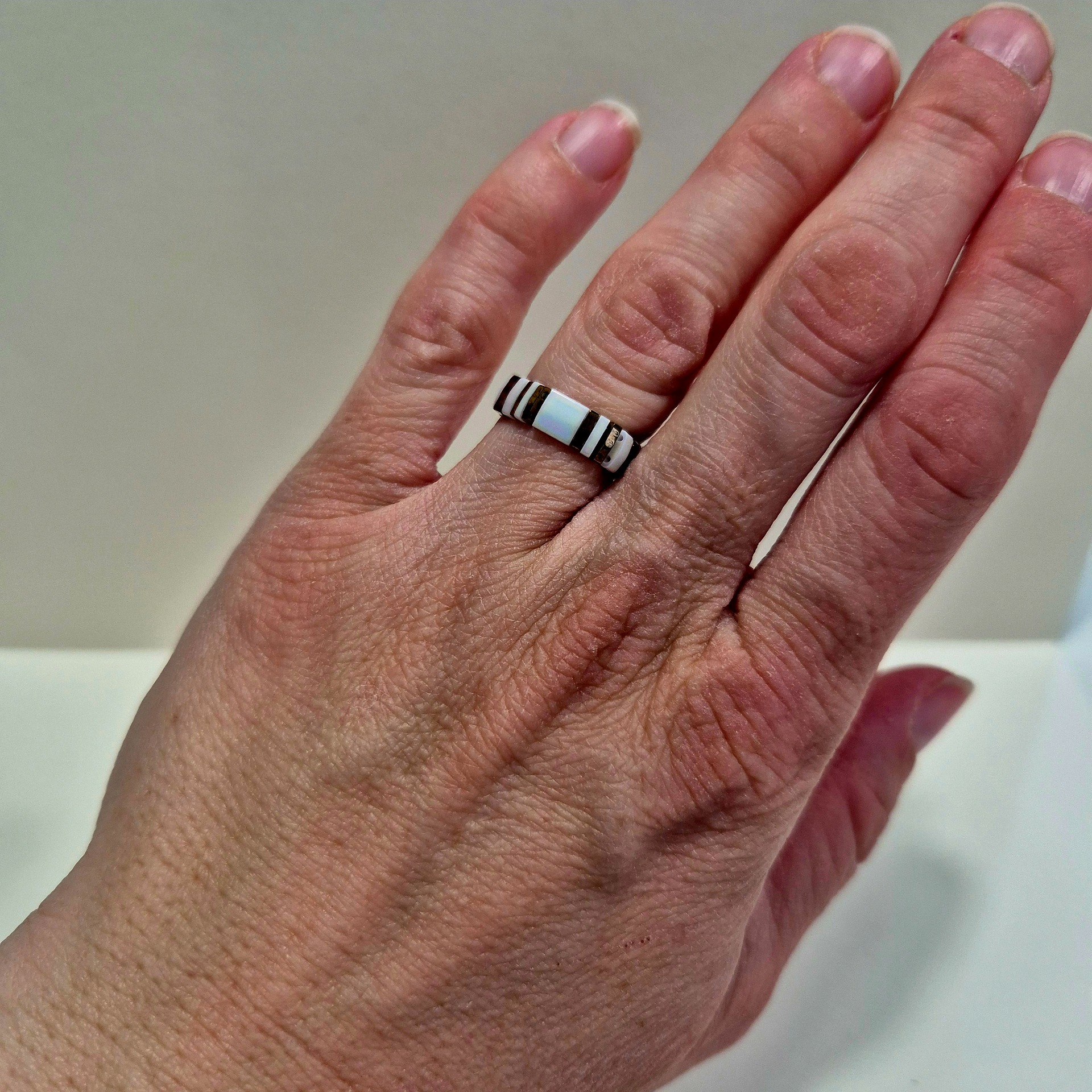 Prstýnek je navlékaný na kvalitní pružence, takže se pohodlně nosí a přirozeně přizpůsobí prstu.